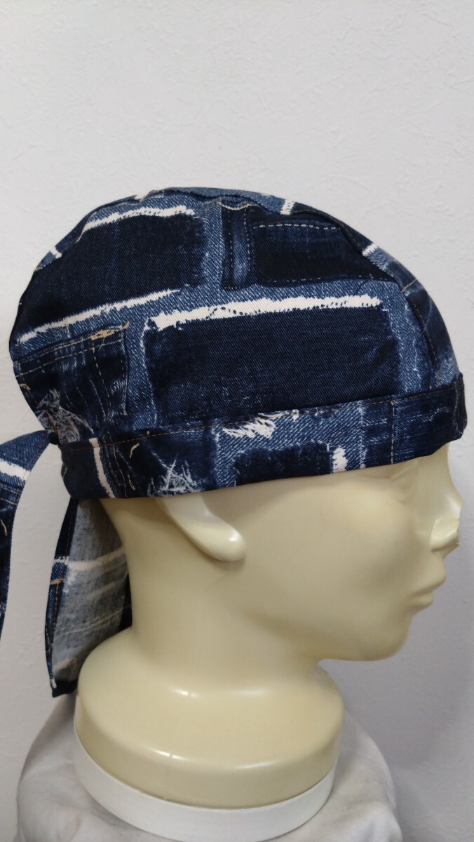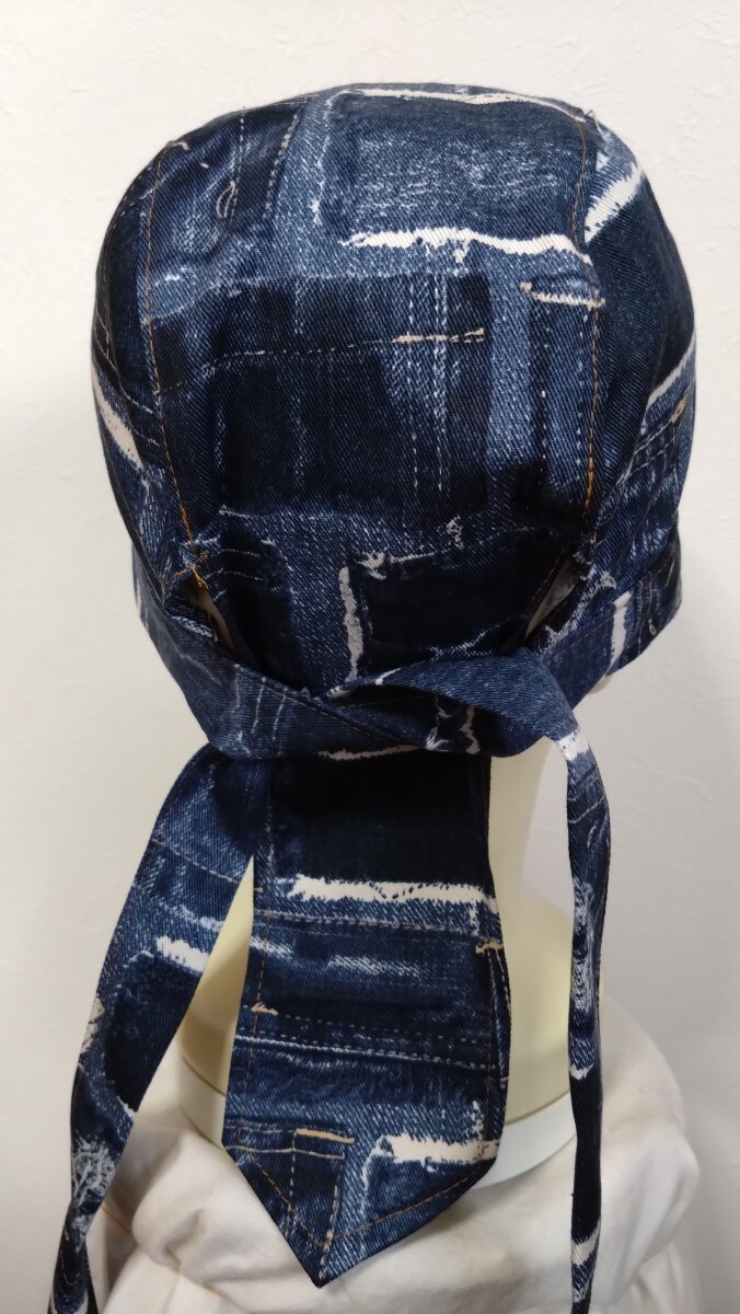 ★バンダナキャップ★ハンドメイド デニム柄 ネイビー 紺