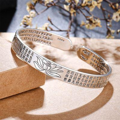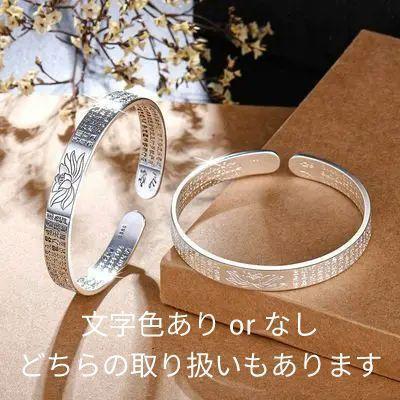 表面には、蓮の花と般若心経が彫り込まれ、裏面にも般若心経のお経が彫り込まれているバングルです。魔除け、厄除け、御守に活用できます!