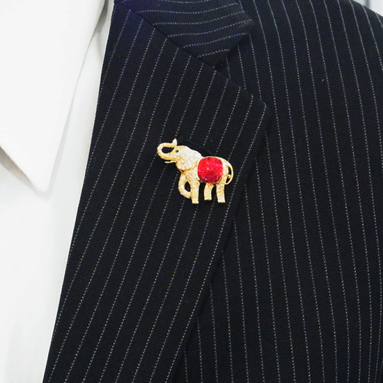 コメント | ミステリーセッティングされた天然ルビーと天然ダイヤモンドを使用した、ゾウのモチーフのブローチです。ジェムリサーチジャパンソーティング付き。 |