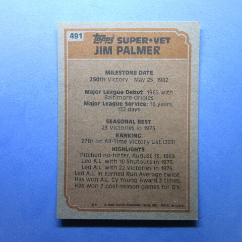 MLB 1983 Topps #491 Super Veteran - Jim Palmer (HALL-OF-FAME)
