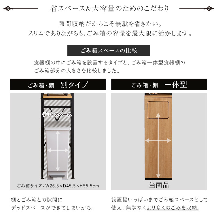 ヴィンテージ ごみ箱一体型食器棚 ごみ箱1つタイプ シャビーオーク