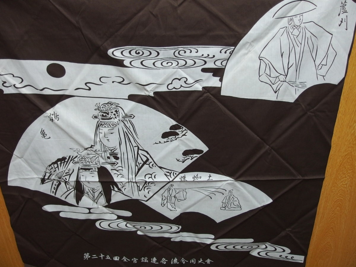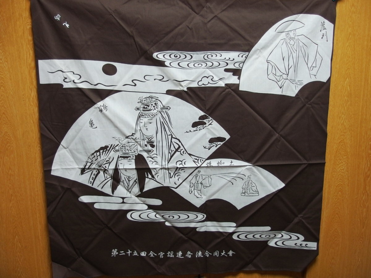 大判 三巾 レトロ 綿風呂敷 謡曲 能楽【 第二十五回 全官謡連 各流合同大會 風呂敷 蘆刈 鶴亀 蜘蛛土 】レア物 銘アリ 古布