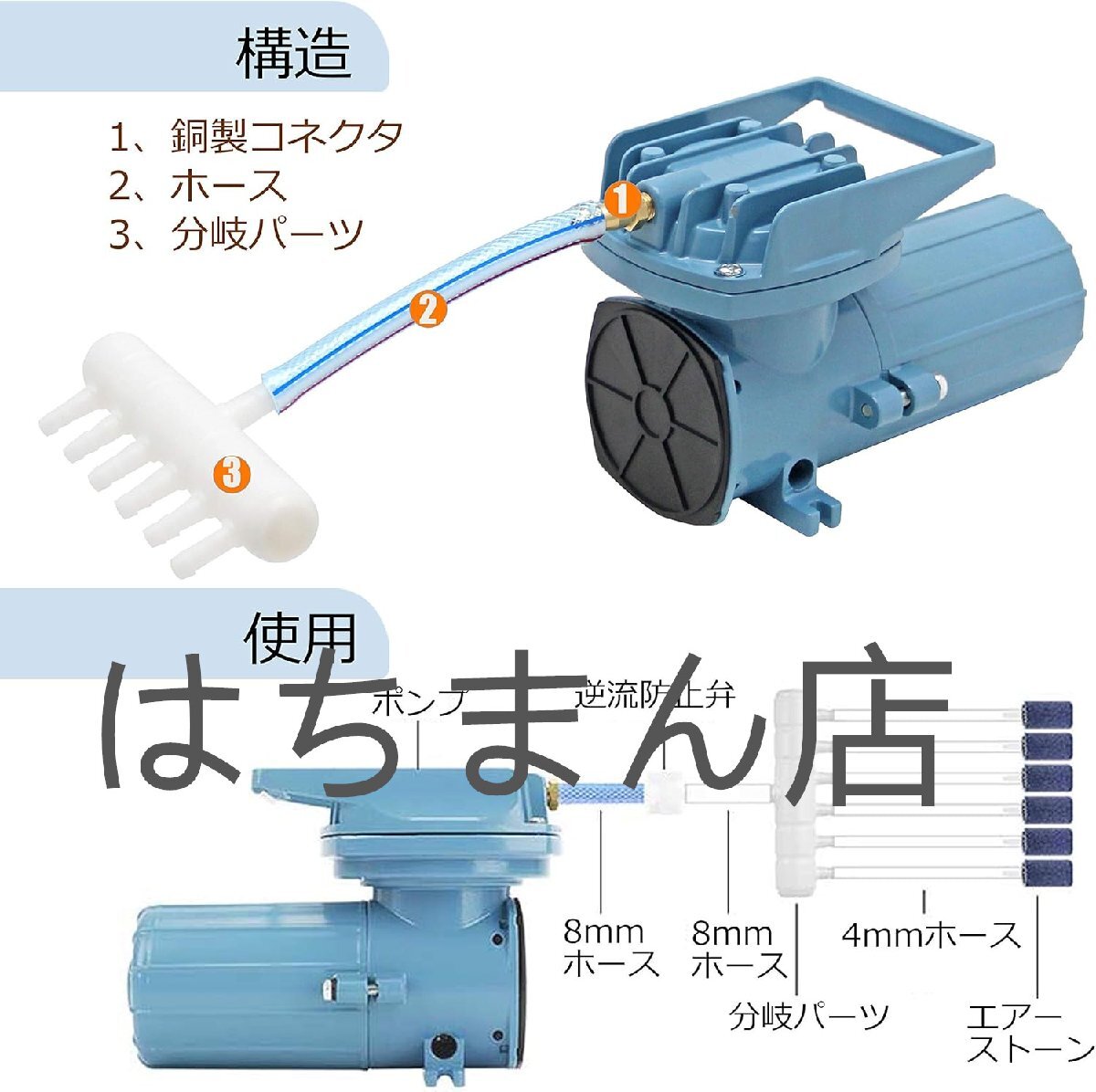 複数の水槽や生簀への酸素供給など、本格的な養殖での使用に向いています。4mmチューブ(20m)やエアーストーン(6個)も付属しているので、別購入することなく便利さUP。