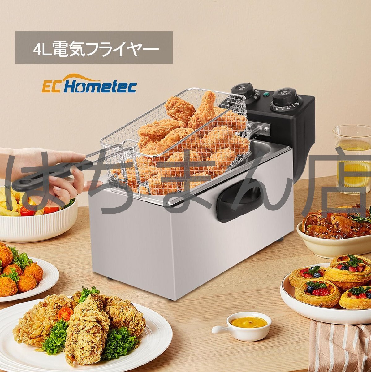電気フライヤー 4L タイマー付き フライヤー ステンレス 60-200℃温度調節 卓上フライヤー 家庭用 業務用 串カツや揚げ物や天ぷら等に
