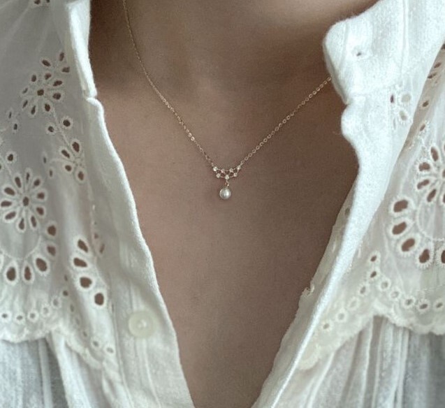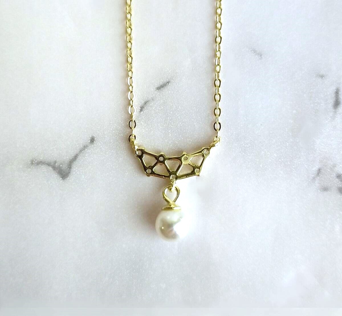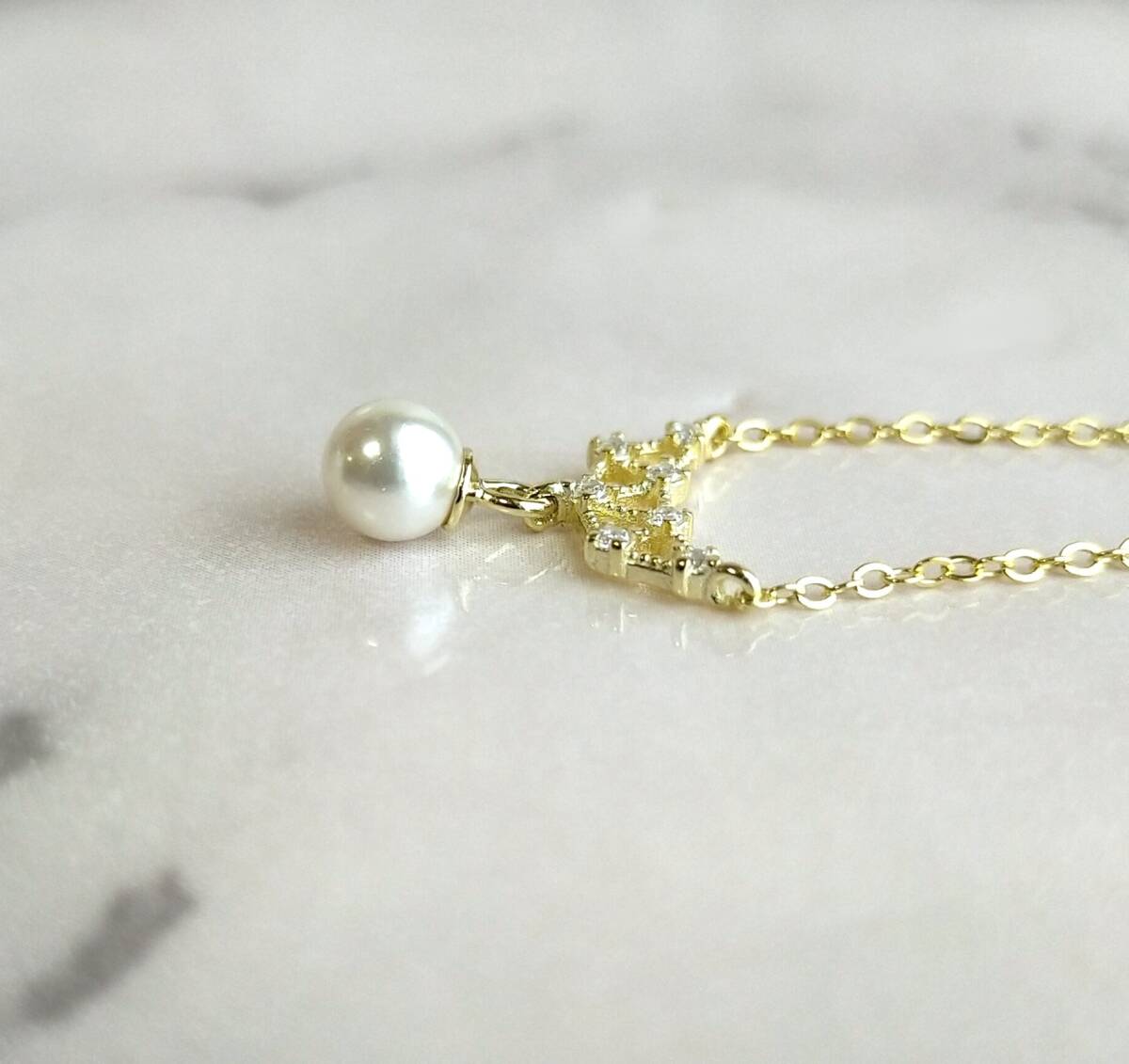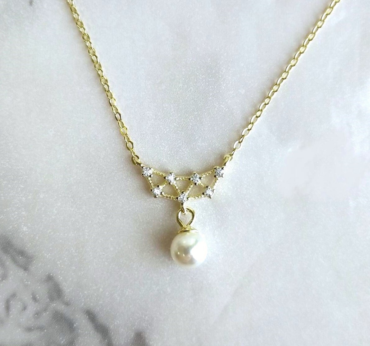 シェルパール レース ネックレス 銀 シルバー925 ペンダント ゴールド 真珠 小さい 14kgp
