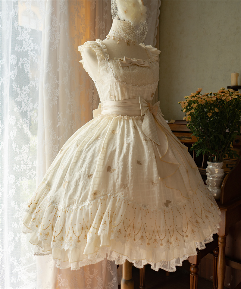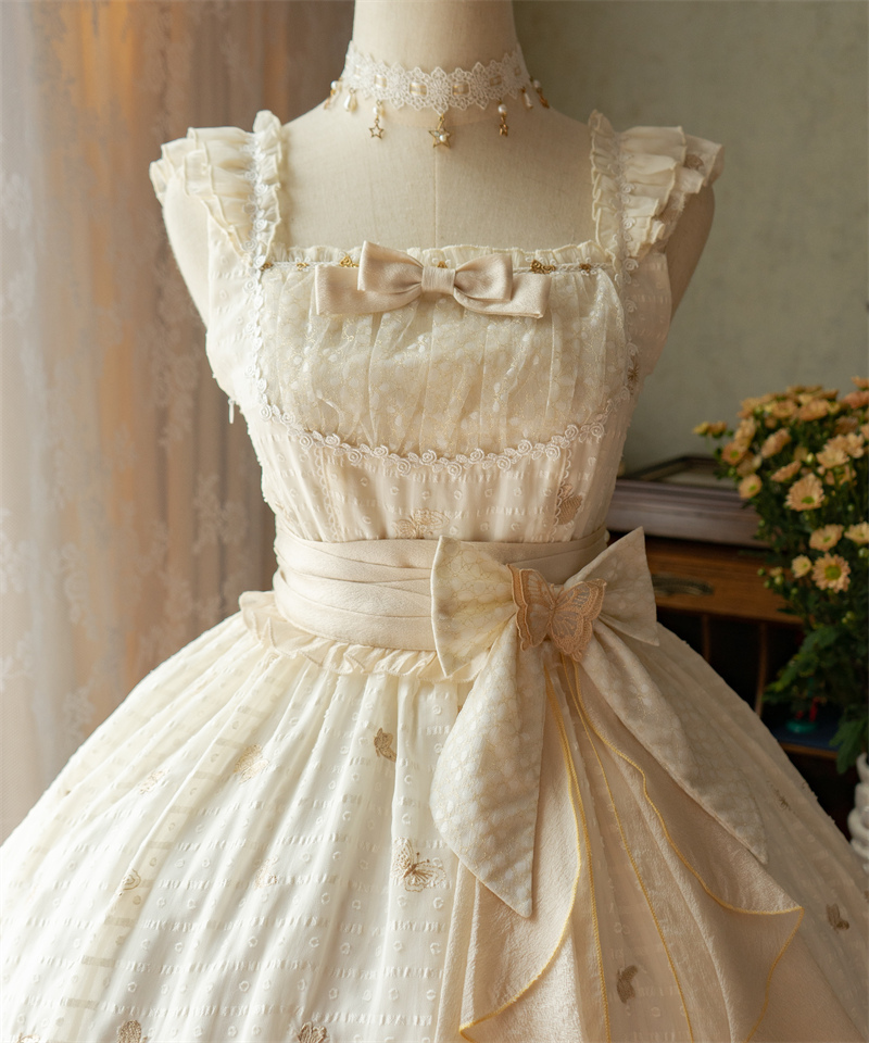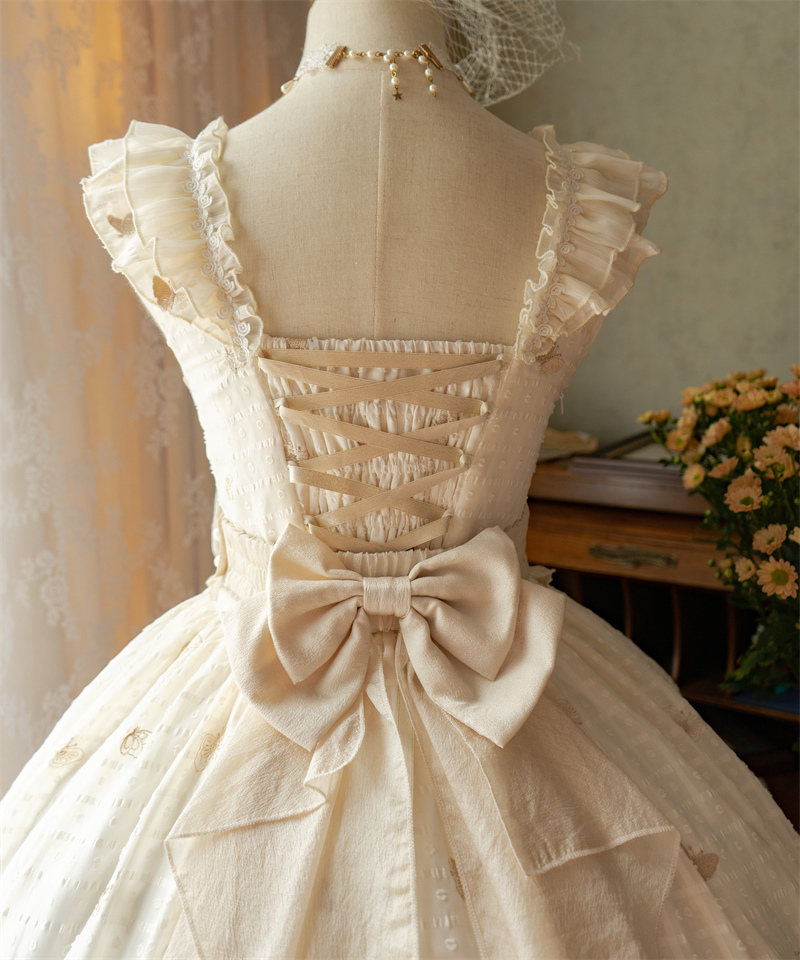 秋新作 ロリータファッション ロリィタ クラロリ ワンピース ウェディング ドレス リボン 蝶 刺繍 ジャンパースカート ゴスロリ 春 夏 レディース エレガント クラシック クラシカル かわいい ゆめかわいい きれいめ 上品 膝丈 ブライダル Lolita コスプレ お嬢様 姫系 ガーリー イベント 舞台 パーティー