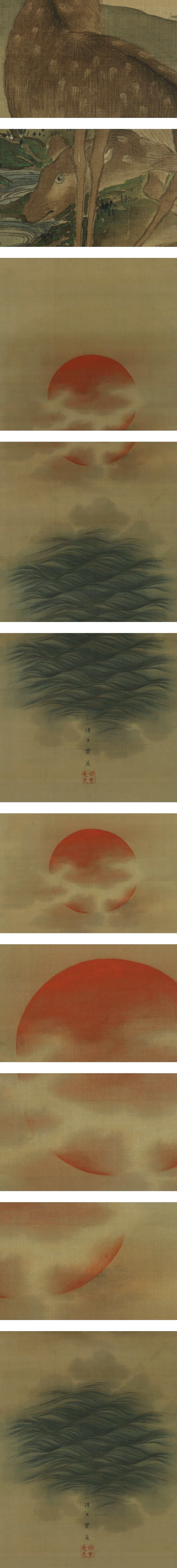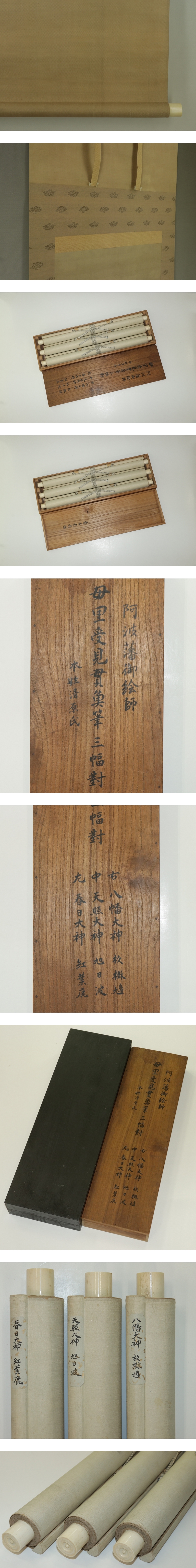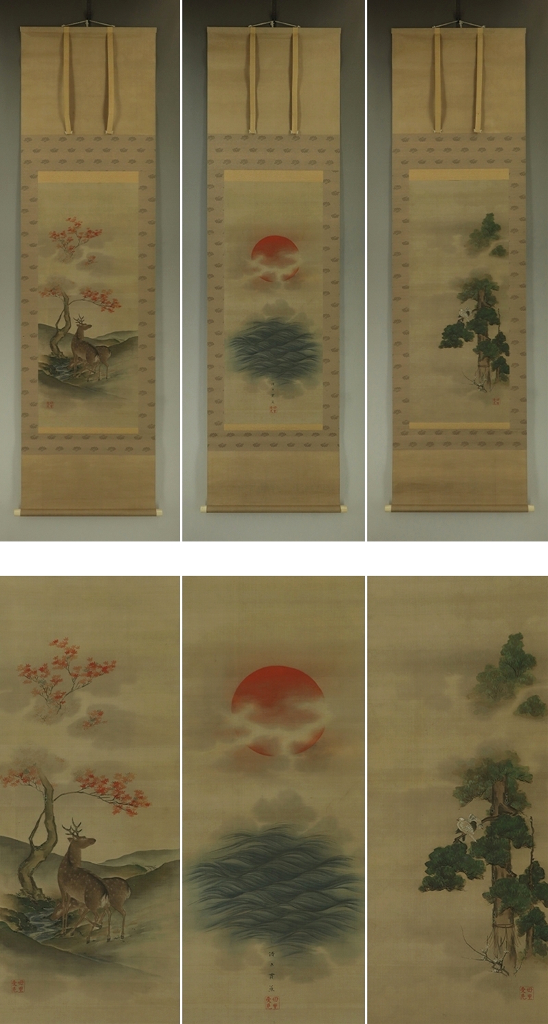| №2402094 名品【模写】守住貫魚【大神三対幅】◆絹本◆合箱◆二重箱◆掛軸 | |