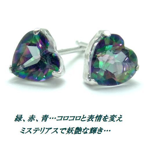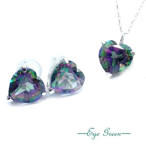K10 ミスティックグリーントパーズ ピアス&ペンダント セット ハート 7mm 大粒 40cm ネックレス WG YG ゴールド アイグリーン 箱付き