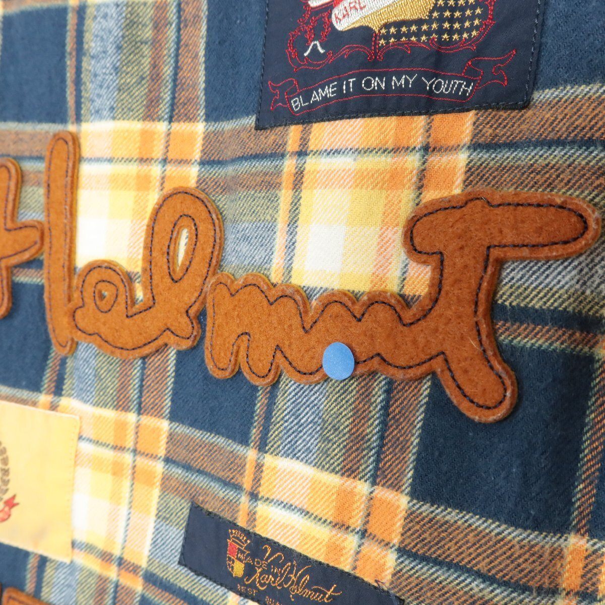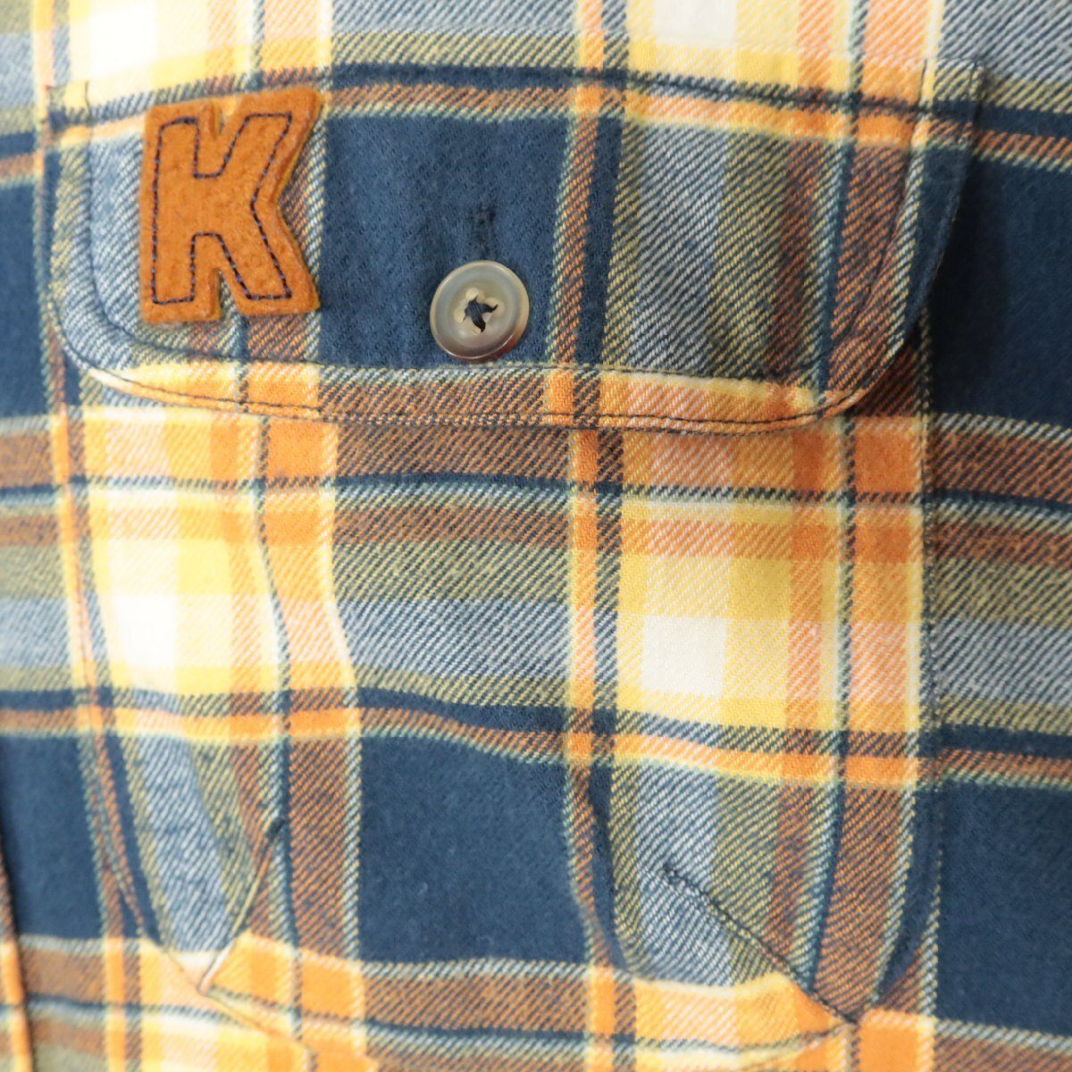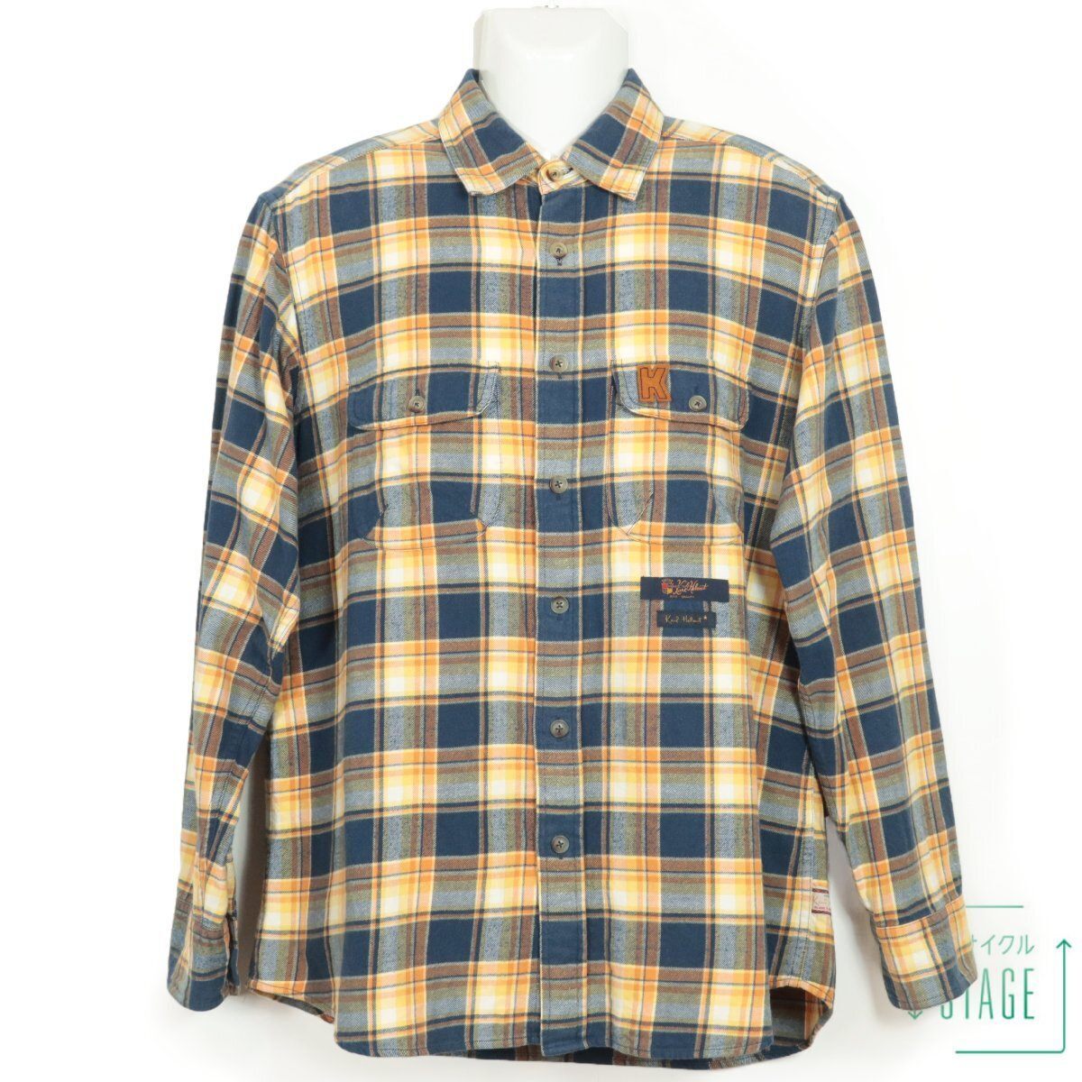 商品説明 | 【実寸約】肩幅48 袖丈63 胸囲117 着丈75 (cm) 【サイズ表記】 L 【素材】綿100% 【状態】普通の使用感のあるお品物 ロゴアップリケに毛玉感あり。 【デザイン】 イエロー×ブルーMIX系 綿100%素材のあたたかな長袖ネルシャツです。 チェック柄の生地にフェルト風のロゴアップリケやロゴ刺しゅうが施された素敵なお品です。 ランダムなロゴタグもオシャレ♪ 前ボタン仕様、左右胸ポケットあり。 |
