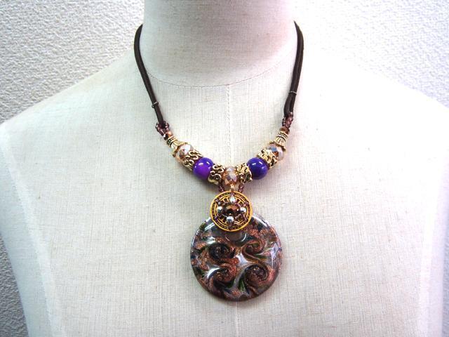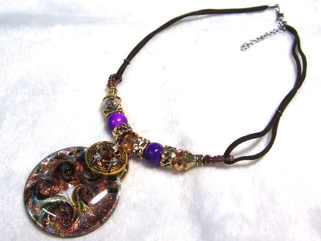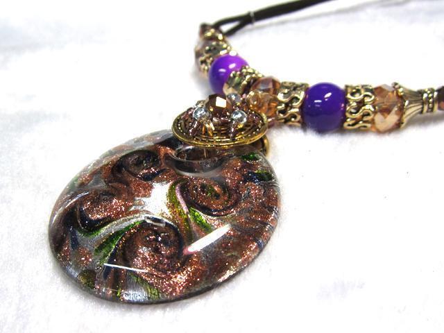 大人気シリーズ!!豪華な箔入りガラストップのネックレスです。