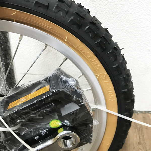規格・仕様 | サドルの高さ:740~790mm タイヤ:16インチ(16×2.125)ブロックタイヤ 英式バルブ サドル:カラーガード付きロングサドル ペダル:樹脂製 車重:約4kg 乗車目安:身長125~145cm (立った状態で、地面からおへそまでの高さが75~85cmくらいが目安です。) 股下目安:660~710mm |