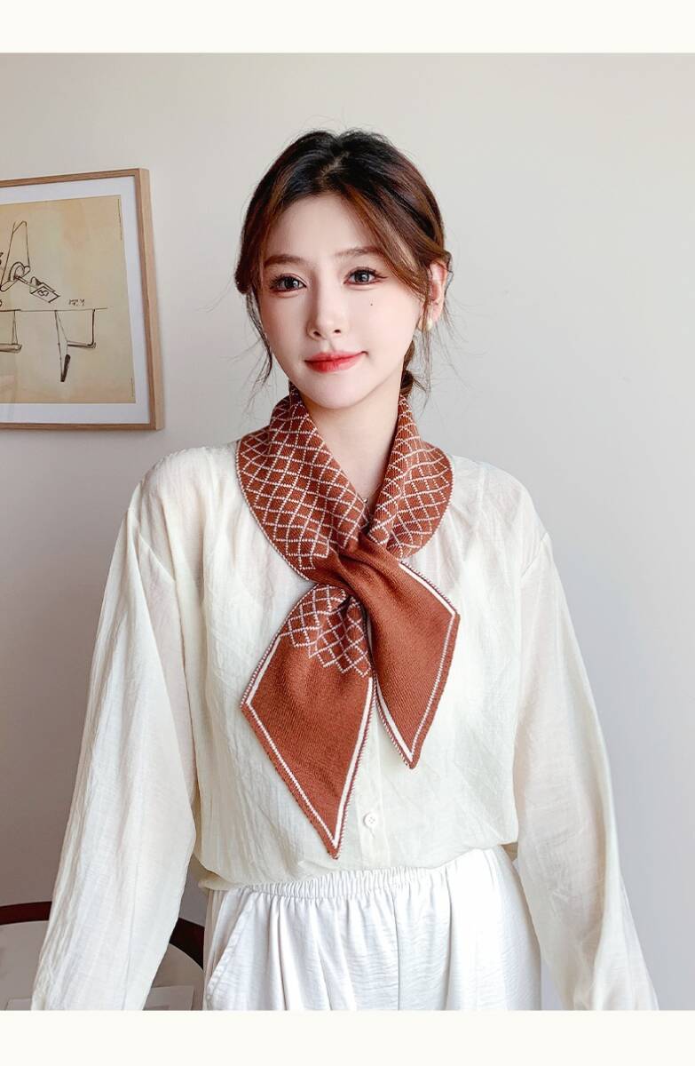 【XM-53】新品ストール秋冬防寒編みニットマフラー 差し込みマフラー 格子柄 茶色