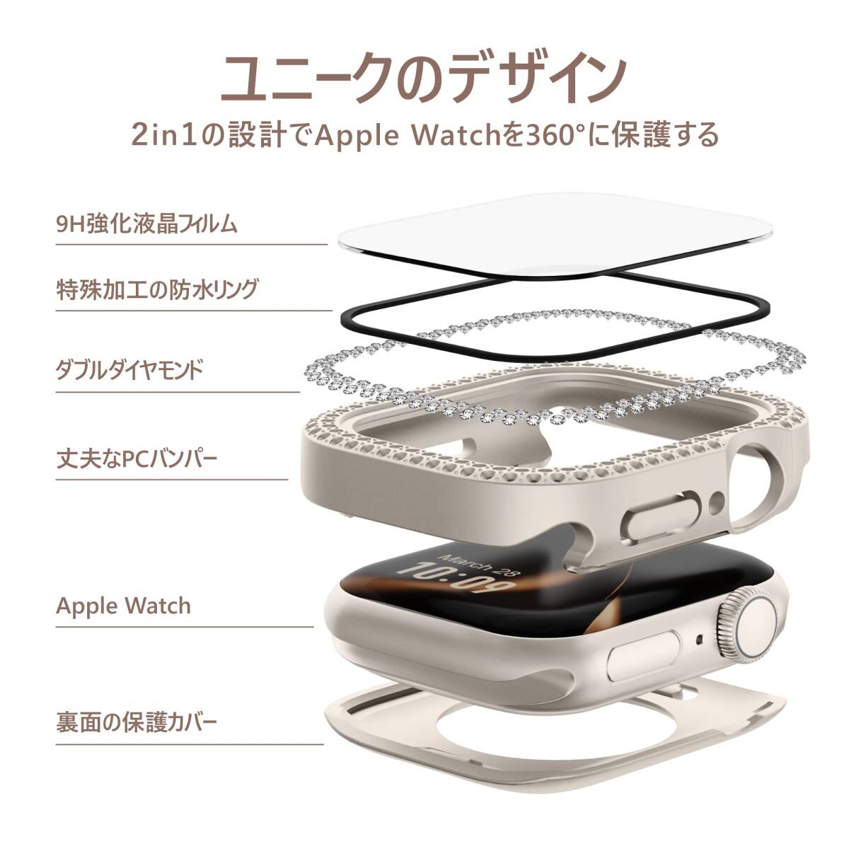 【特価商品】カバー 防水ケース カバー 40mm ダブルダイヤモンド Watch 保護フィルム付き 一体型 Apple IP68完