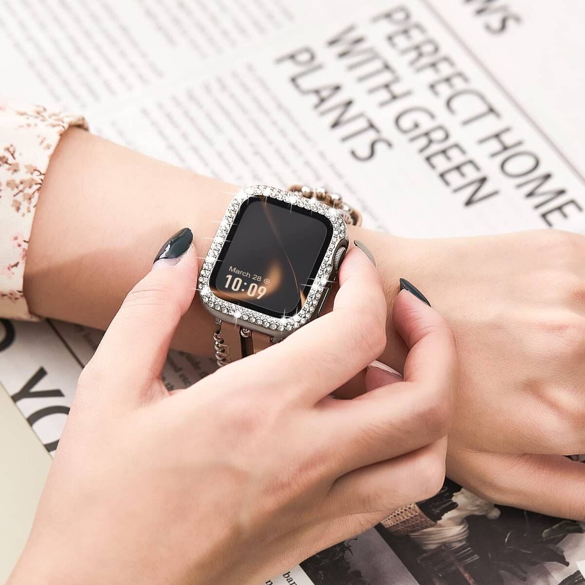 対応機種:Apple Watch Series 6 5 4 SEの40mmに対応できます。ダブルダイヤモンドがキラキラしていてとても綺麗し、ラインストーンの光沢がラグジュアリーな高級感を醸し出していて、みんなに可愛いって言われたデザインです。