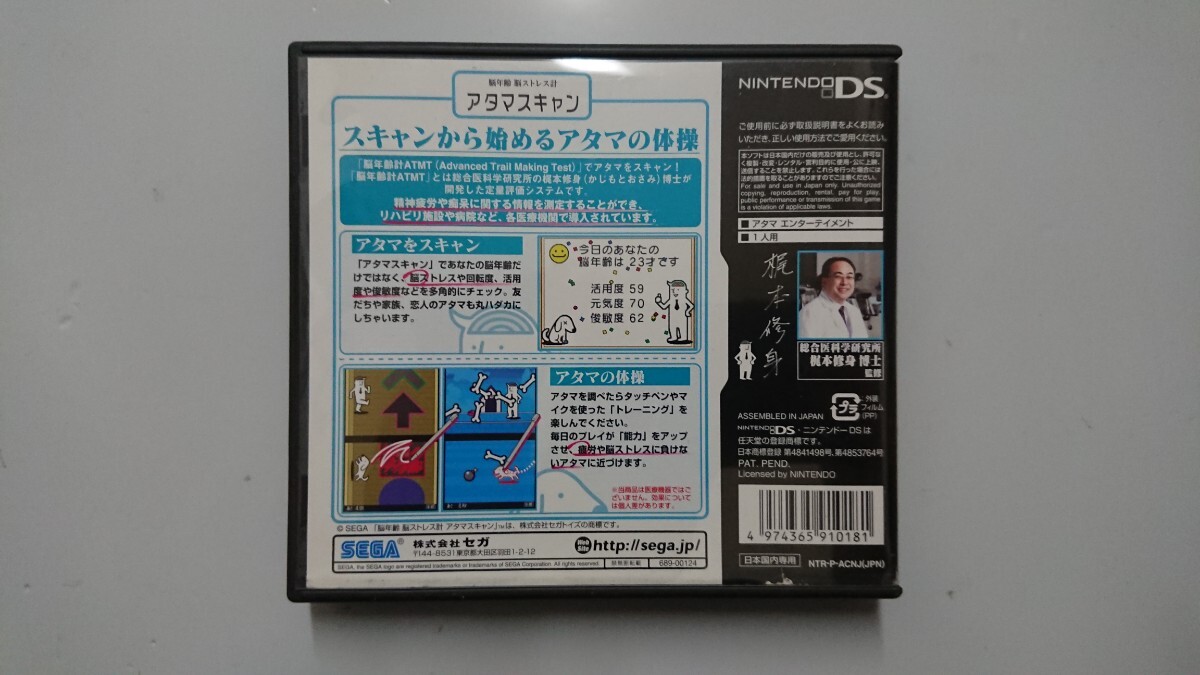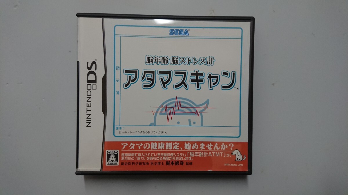 DSソフト 脳年齢 脳ストレス計 アタマスキャン 中古です。ソフト、ケースの出品です。中古ですのでキズ汚れあります。発送は定形内270円サイズです。中古ですのでノークレームノーリターンです。