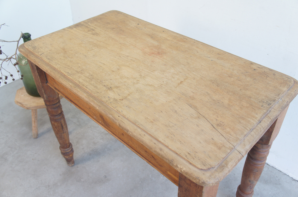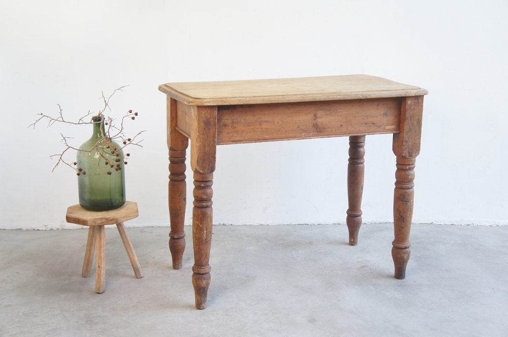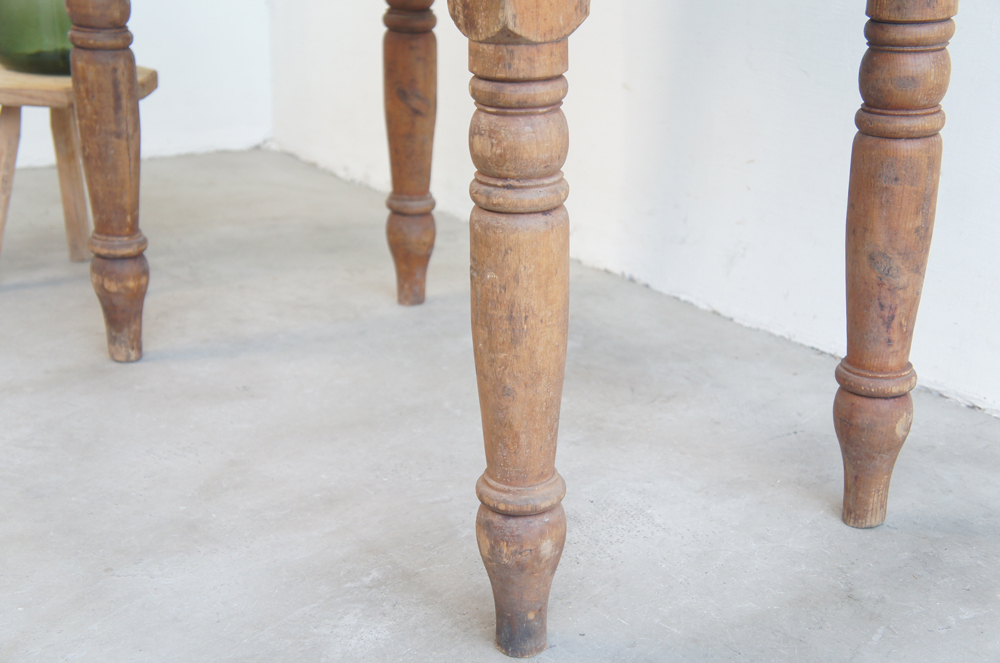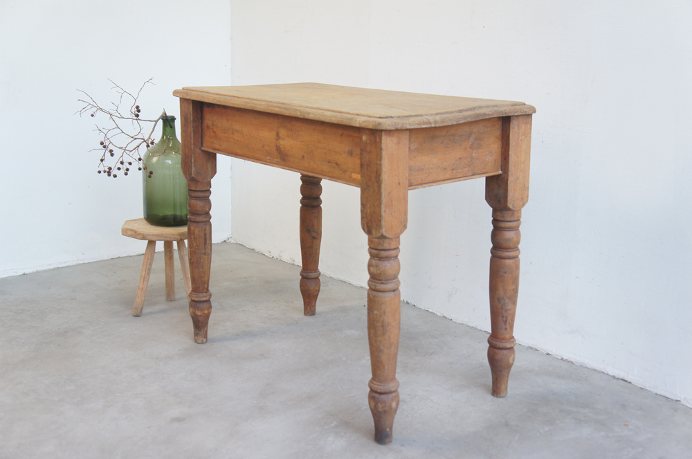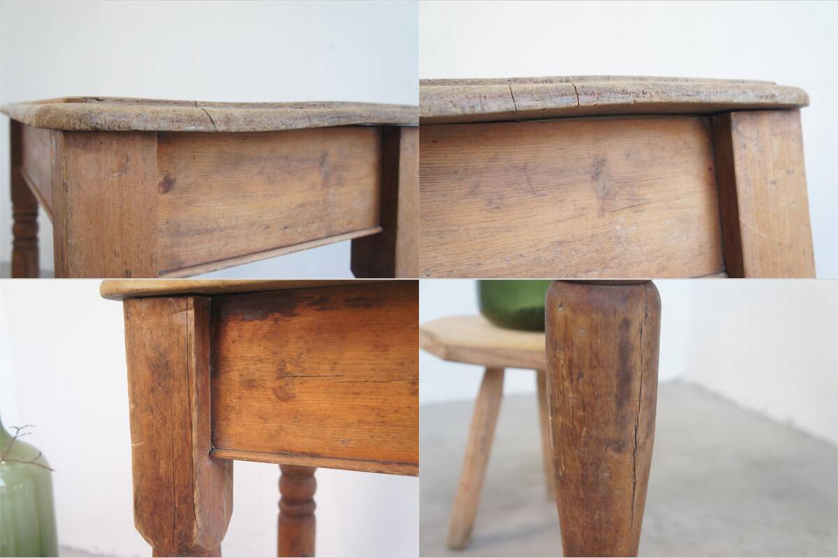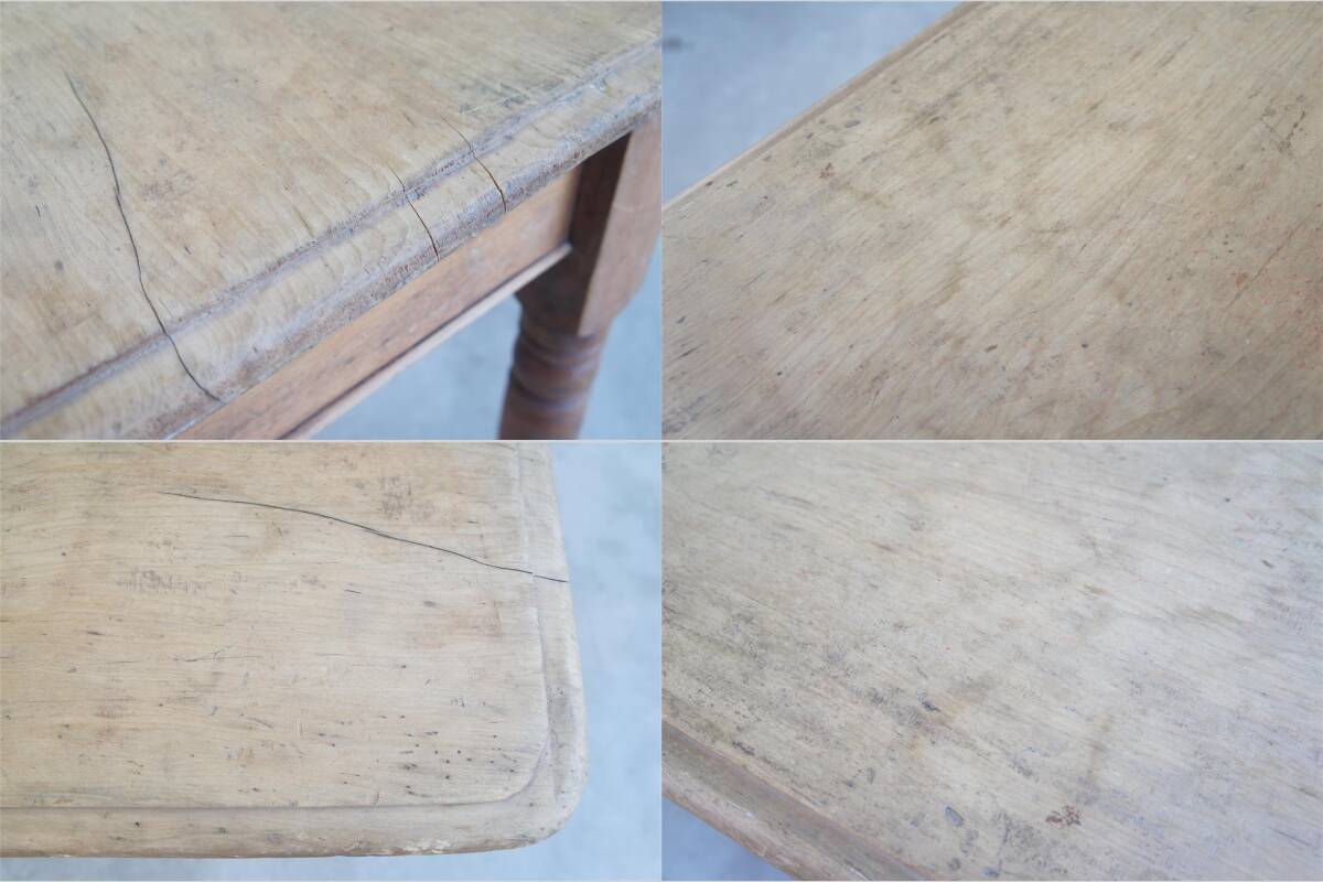長い年月を経てこそ出せる、枯れた風合いが素敵なアンティークのパインテーブル。