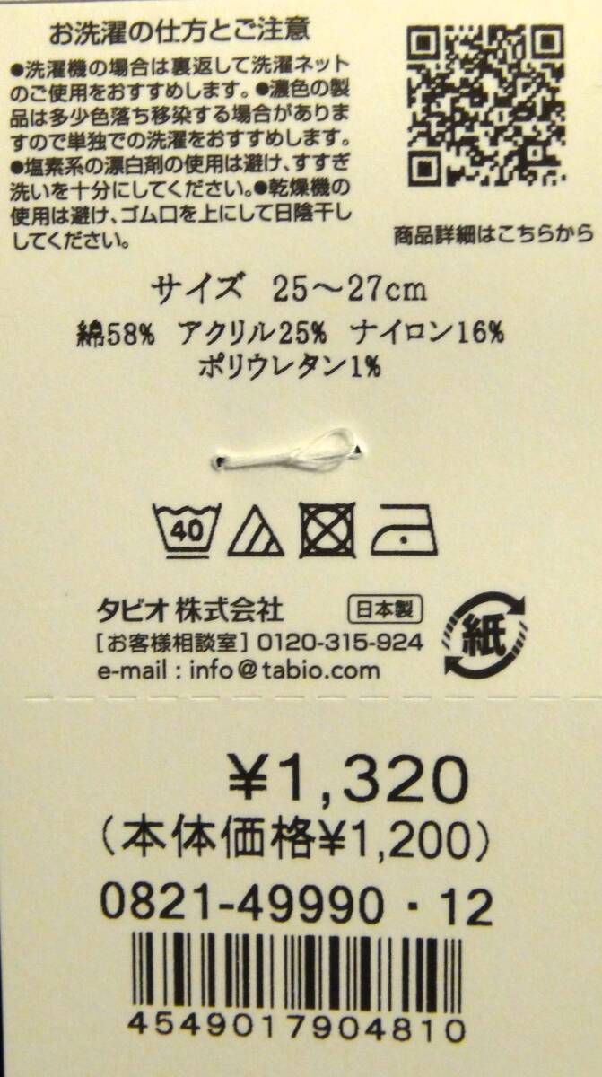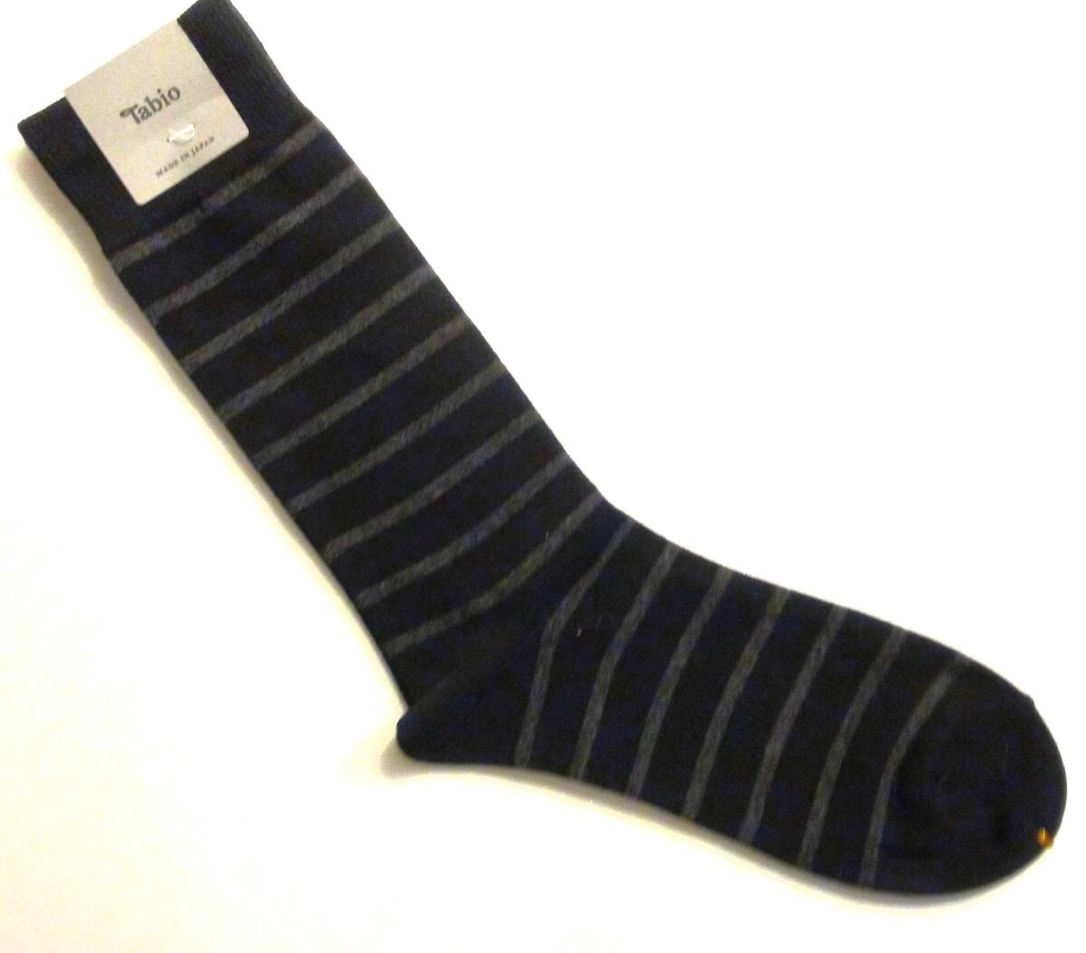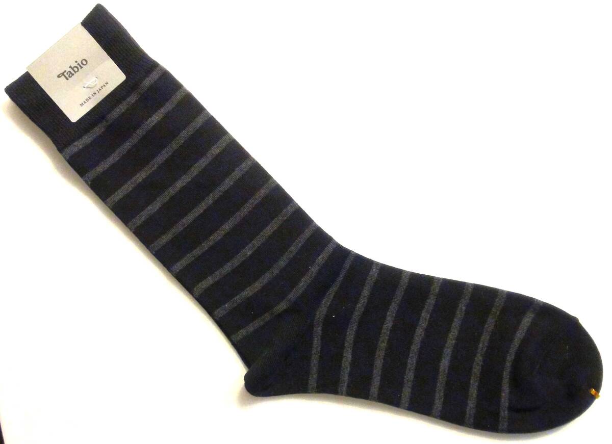 (メンズ・ソックス・新品)Tabio タビオ 高品質 綿混 厚手 ミドルハイソックス 25~27㎝ 黒地にグレーのボーダー柄 ¥1,320