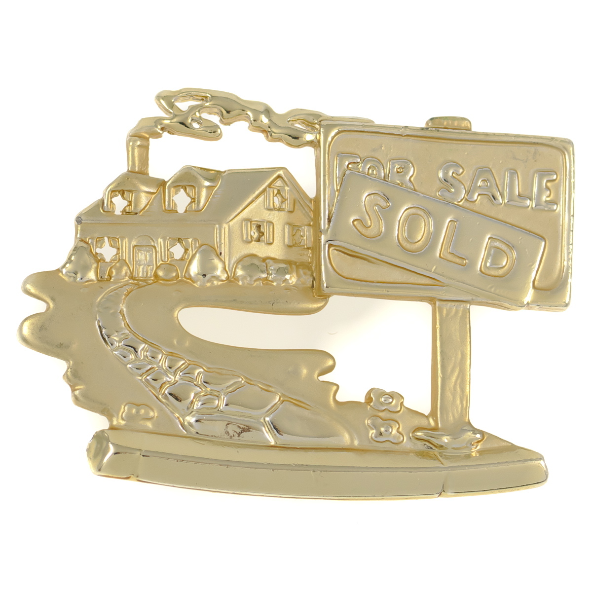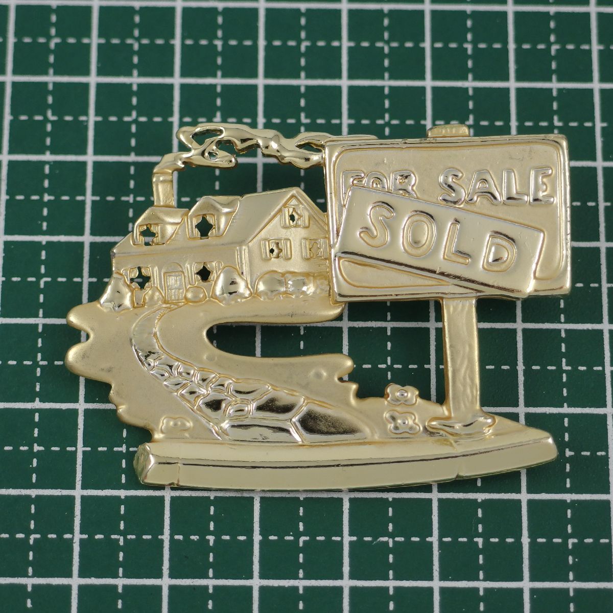 A10296◆【AJC】◆ 売り家モチーフ 艶消し&鏡面ゴールドトーン ◆ ヴィンテージブローチ ◆