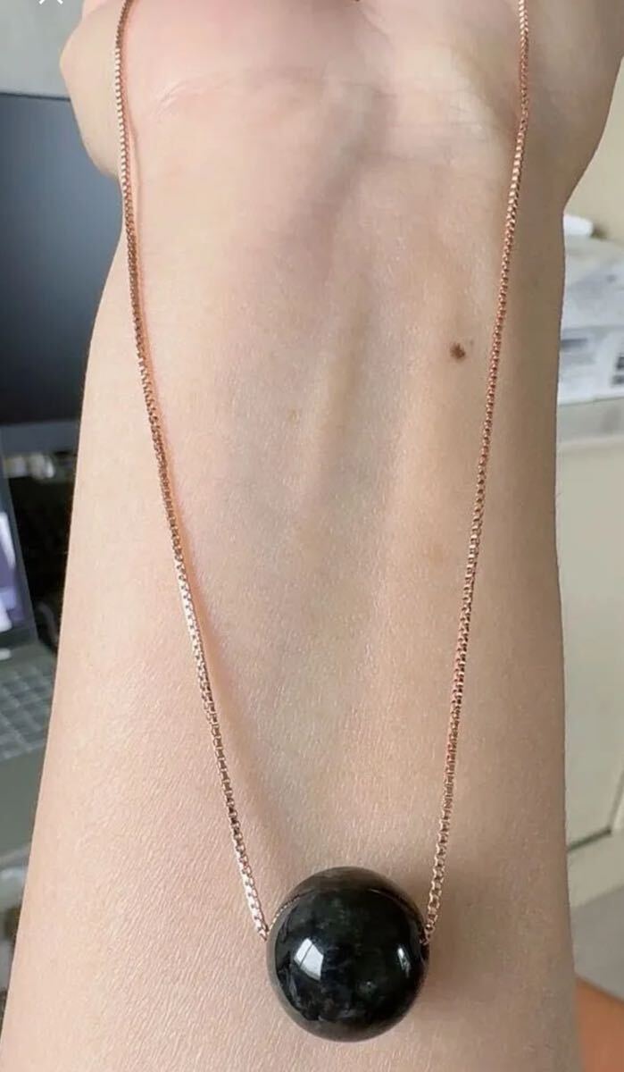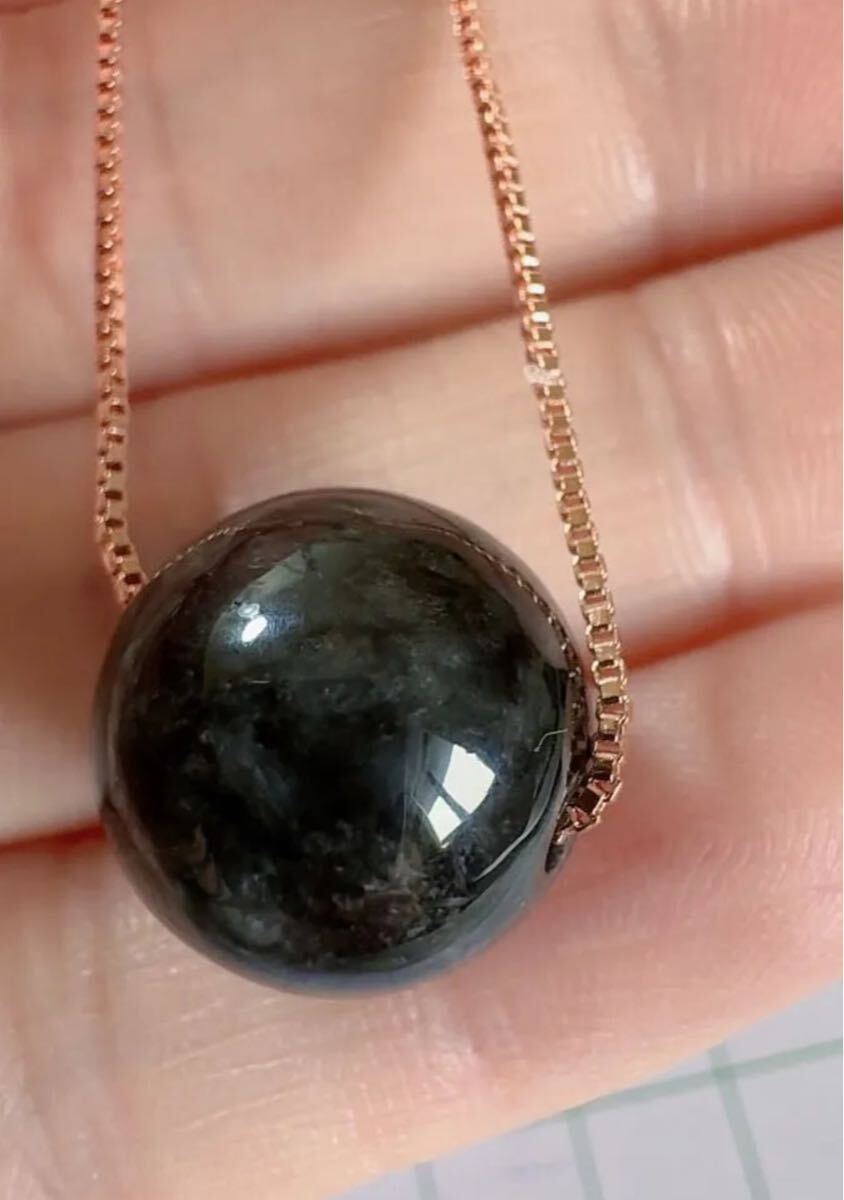 天然石 天然翡翠ペンダント直径13.4mm 黒翡翠 上質上品 白黒 ネックレス約45cm(調整可能) パワーストーン 縁起物