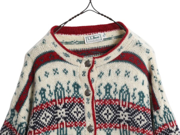 商品名 | 80s USA製 エルエルビーン ノルディック ウール ニット カーディガン レディース XL ヴィンテージ LLBEAN セーター バーズアイ 前開き 丸首 |