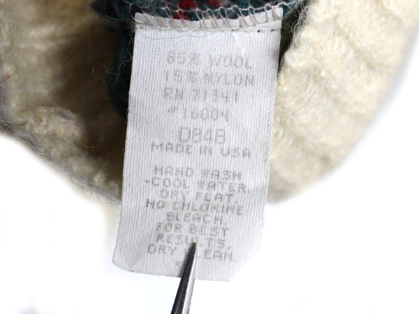 80年代の旧タグ ヴィンテージ L.L.BEAN の長袖 ニット カーディガンです。 素材は、85% WOOL:15% NYLON (ウール ナイロン) ストレスのない着心地の快適なミドルゲージ 保温性の高い素材が使用されています。 希少な、MADE IN USA (アメリカ製) フロントボタンは、柄入りの コンチョボタン 合わせやすい、ナチュラル ベース 人気のバーズアイで構成された、ノルディックの総柄 L.L.BEANらしい時代に左右されない オーセンティックなグッドデザイン しっかりと作りこまれた、お勧めの商品です。 |