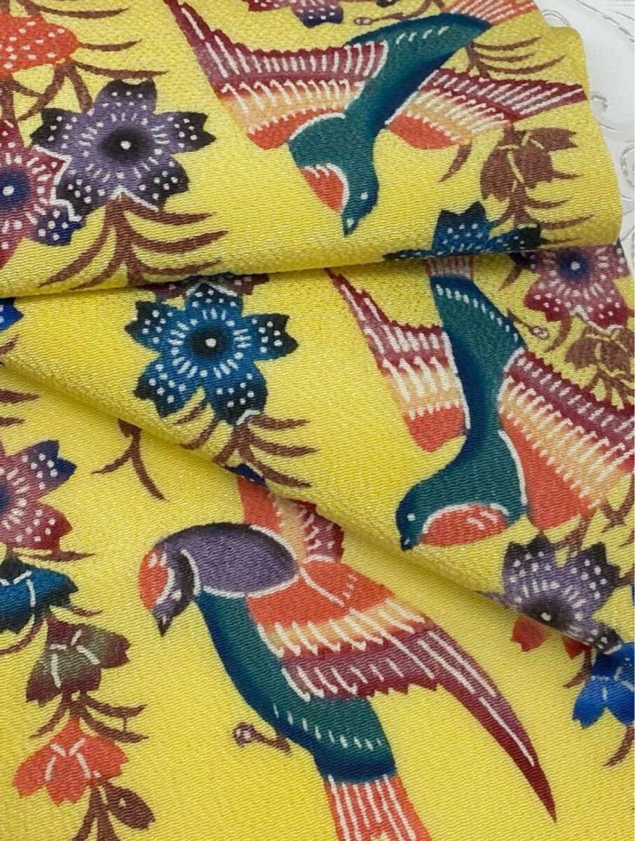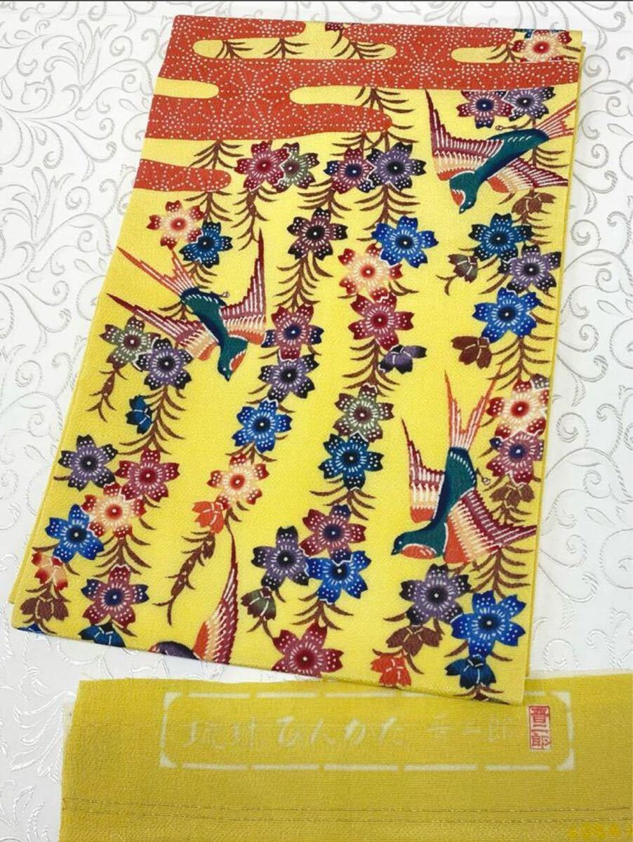 平野晋二郎 琉球紅型 鬼しぼちりめん 九寸名古屋帯 鳥 浜ちりめん 正絹