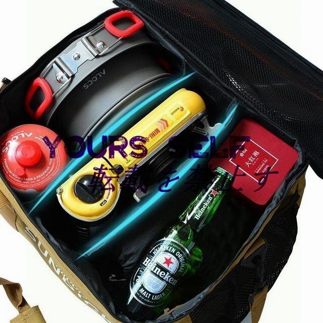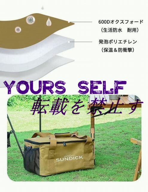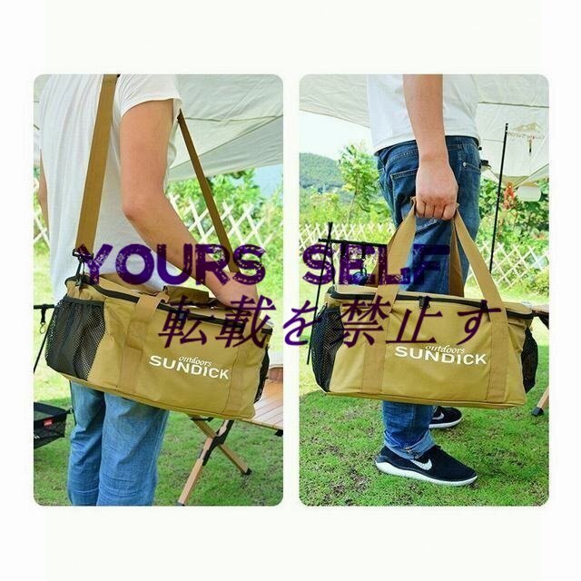 メイン素材: 600Dオクスフォード サイズ:掲載サイズ表をご参照ください。 この広いサイズならたくさんの物を入れられます、小物やペグ等小さいサイズの物をきちんと収納ケースに収納すれば、紛失の可能性も減らせます。 衝撃に強い:内側の材料は発泡ポリエチレンを使用しています、極厚割には柔らかい、よほどの衝撃じゃなければ中に影響しません、断熱材だから保温もできますので、飲み物や肉、野菜等BBQで楽しめる物に最適です。 持ち運び易い:四方にはハンドルが付いておりまので、片手持ちや両手持ち、重さ次第で適した方法を選べます、持ち運び便利です 折りたたみでき:展開すればこれほどの広さがありますけれども、使わない時は中の仕切り板を取り外せば、コンパクトで折り畳める、スペースを最大限で利用できます 様々な用途:山登り、キャンプ、BBQ、ビーチ等様々な場所で活躍できる便利なトートバッグ、大容量でいろんなアウトドア道具を収納できます、耐摩性が強いので長期間使用可能です