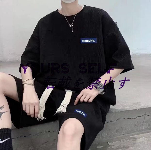 夏 カジュアル 半袖シャツ ショートパンツ 韓國ファッション セットアップ 上下セット メンズ グレー XL