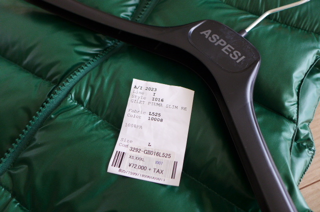 イタリア製…アスペジのシンプルなスタンドカラーのダウンベストのご紹介です。