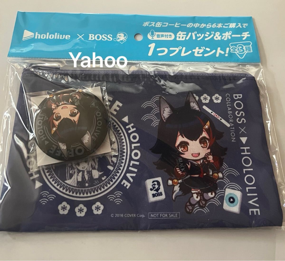 大神みお hololive×BOSS サントリー ボス缶コーヒー/ホロライブ 音声付き缶バッジ&ポーチ/新品/オリジナル/非売品 ノベルティグッズ