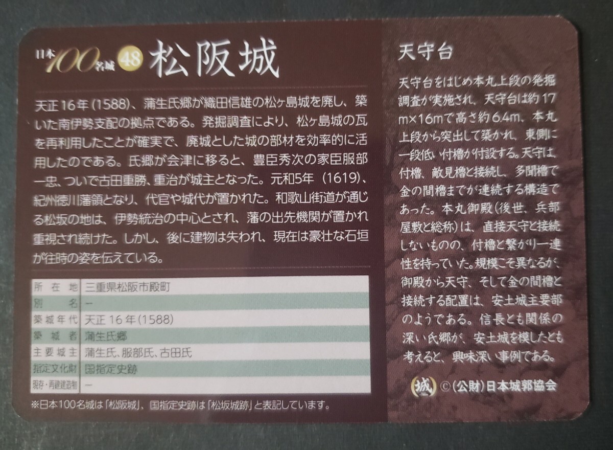 | ♪♪日本100名城 城カード 松阪城+松坂城跡パンプレット 三重県 松阪市♪No48 蒲生氏郷♪♪ | |