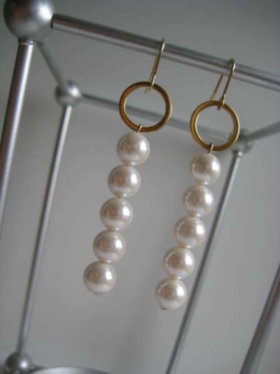 ◆パール×サークルロングピアス◆新品 ゴールド 上品 リング シンプル フォーマル 縦長 大人可愛い 丸モチーフ フック 結婚式入学式卒業式