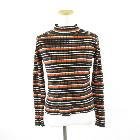 アズノウアズ as know as Plus リブニット 長袖 ボーダー 黒 茶 M *A298 レディース
