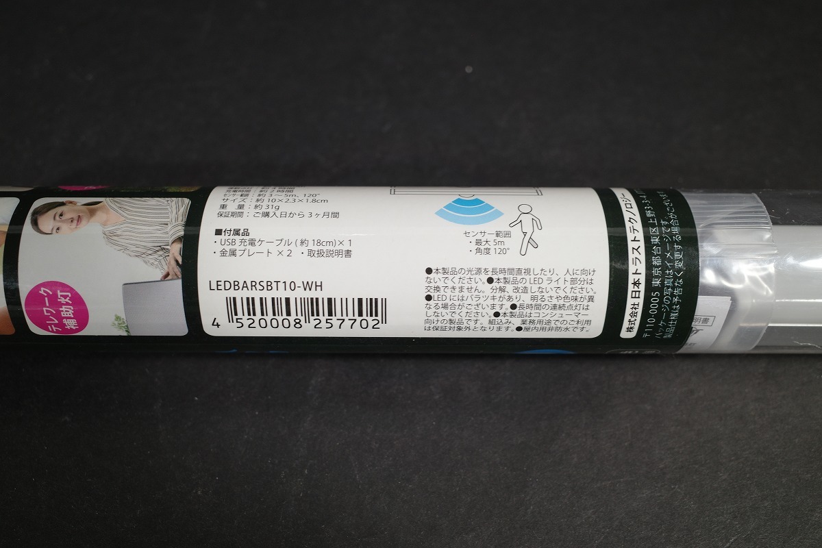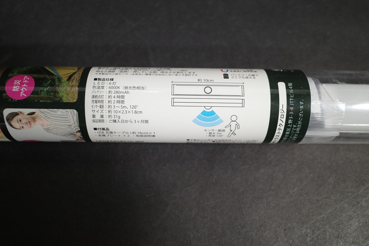 新品 即決 USB LEDBARライト 人感センサー&バッテリー内蔵 10cm ホワイト LEDBARSBT10-WH