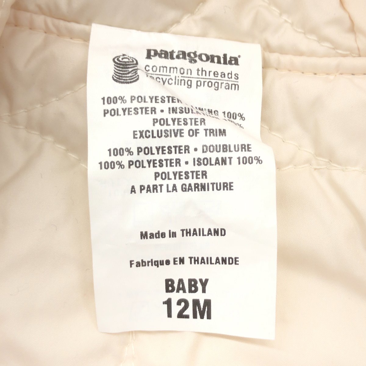 ●新品 Patagonia パタゴニア 定価12,600円 リバーシブル 中綿 キルティング ジャケット BABY 12M(80相当) キッズ ベビー 赤ちゃん 未使用