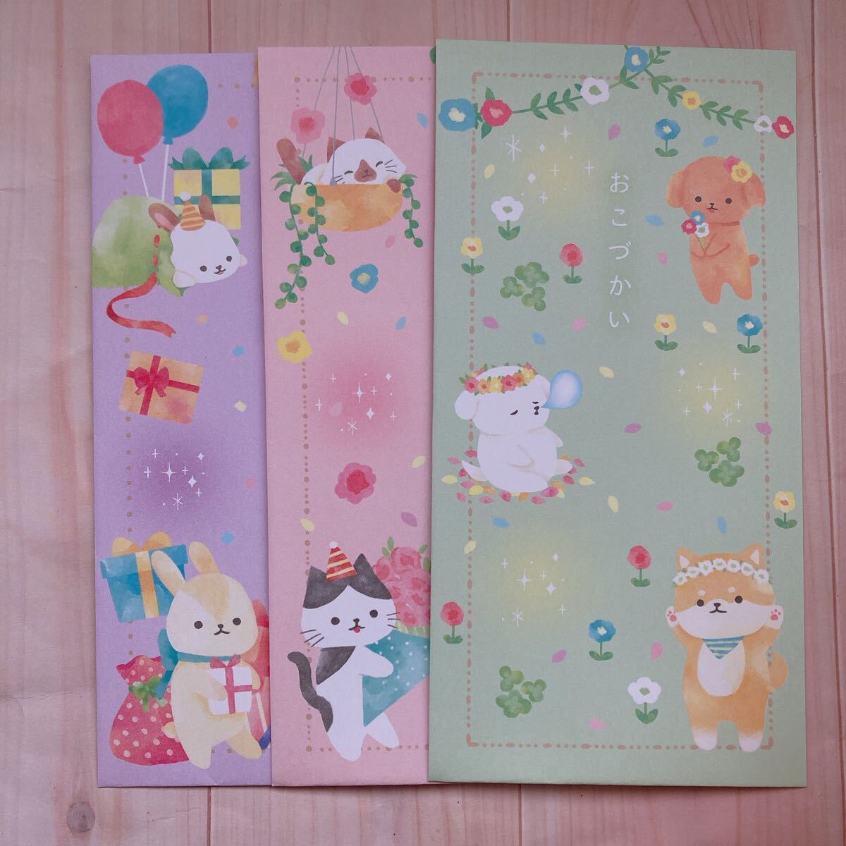 3440☆ ファンシー ねこ ネコ 猫 いぬ 犬 イヌ うさぎ 兎 お年玉袋 ポチ袋 万型 おこづかい 3種類3枚