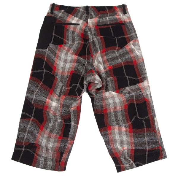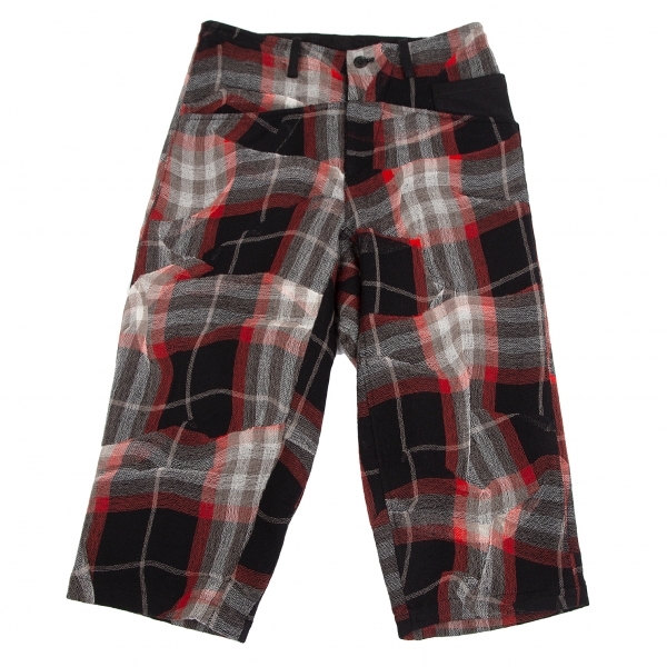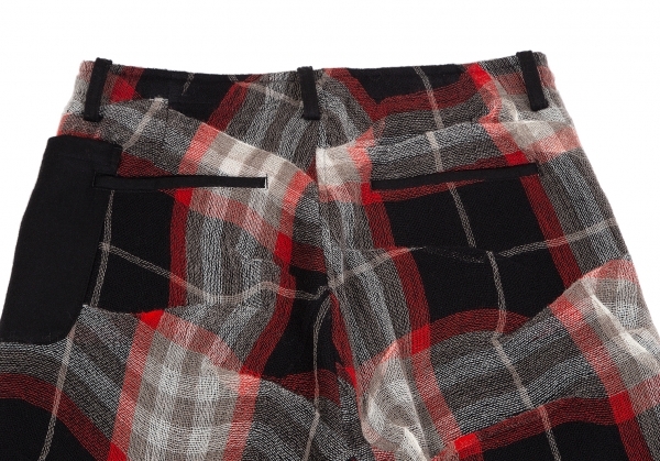 ワイズY's ウールゆがみチェックサルエルパンツ 赤黒白1 |