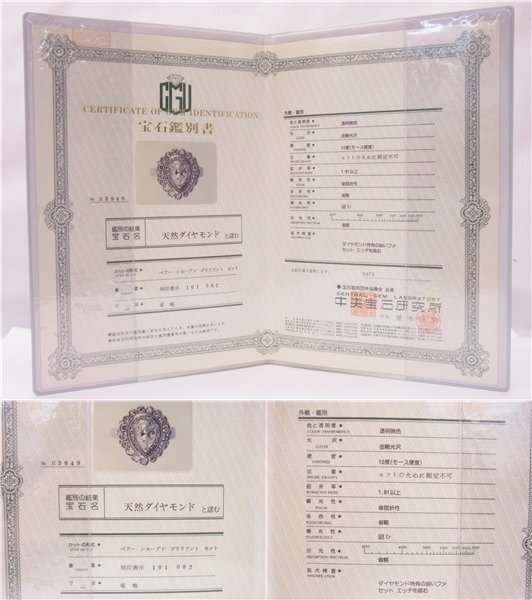 中央宝石研究所の宝石鑑別書付属