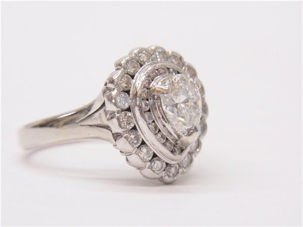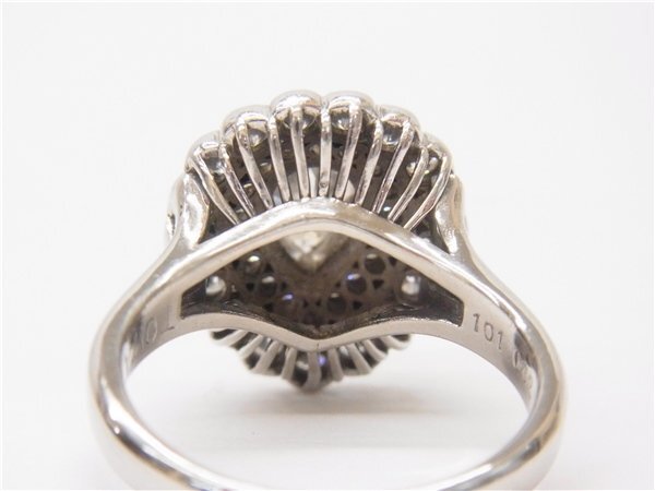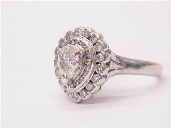 ◎ ダイヤデザインリング ◎ PT900 ペア―シェイプダイヤ1.01ct メレダイヤ0.82ct 重量10g 15号 指輪 研磨済み 鑑別書有 ◎美品
