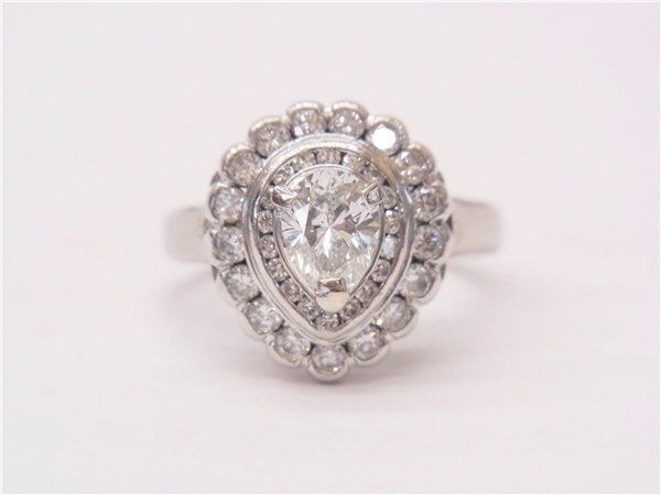 ◎ ダイヤデザインリング ◎ PT900 ペア―シェイプダイヤ1.01ct メレダイヤ0.82ct 重量10g 15号 指輪 研磨済み 鑑別書有 ◎美品