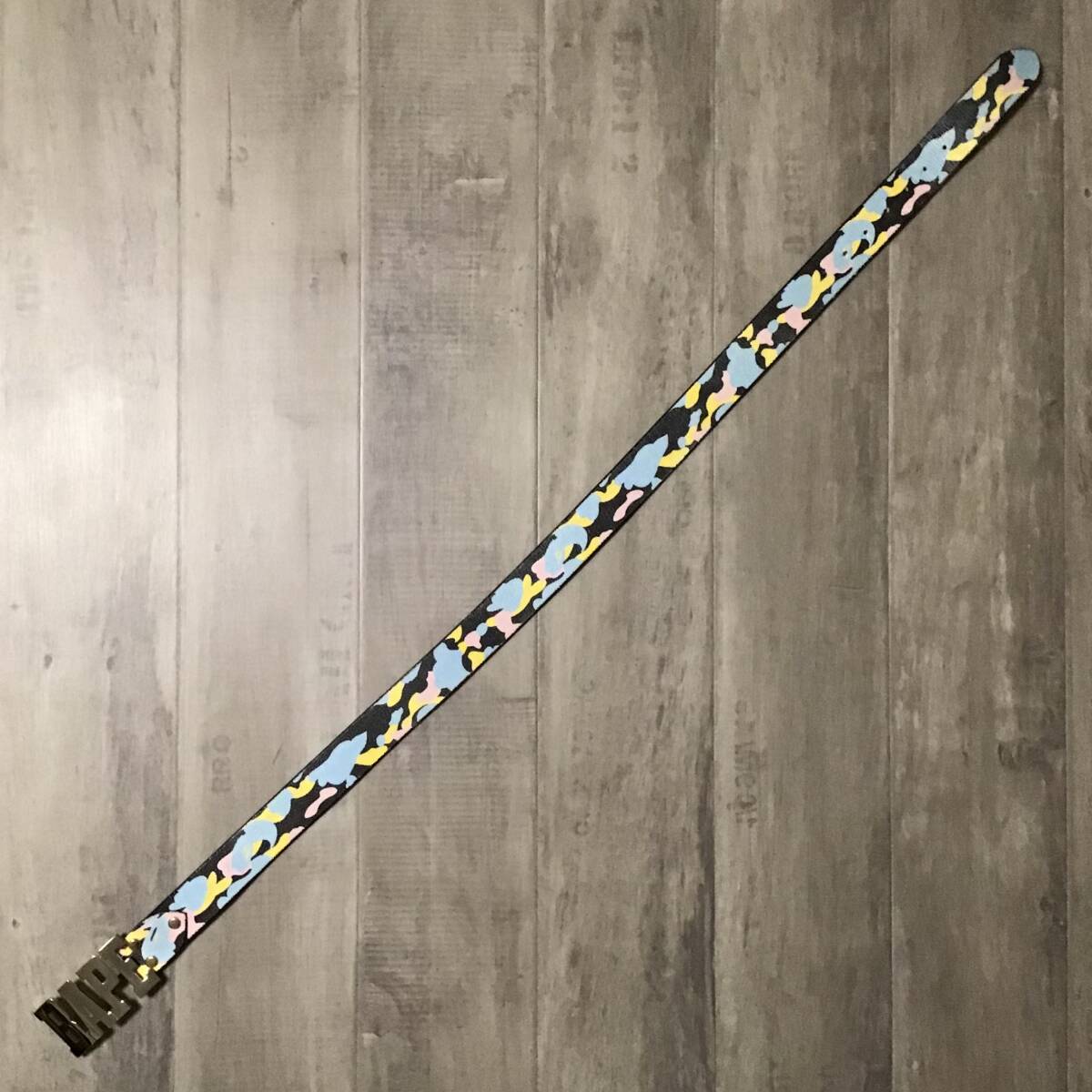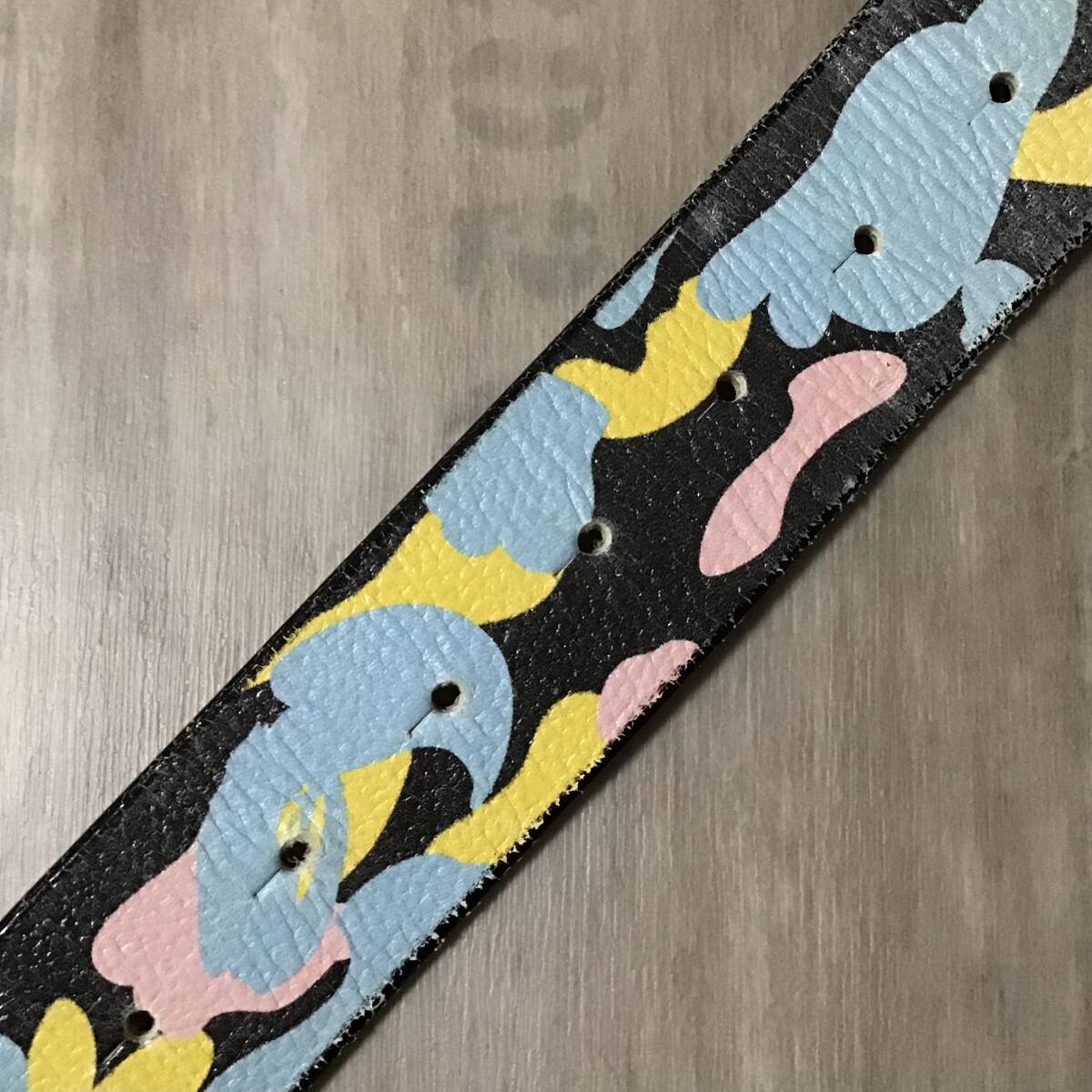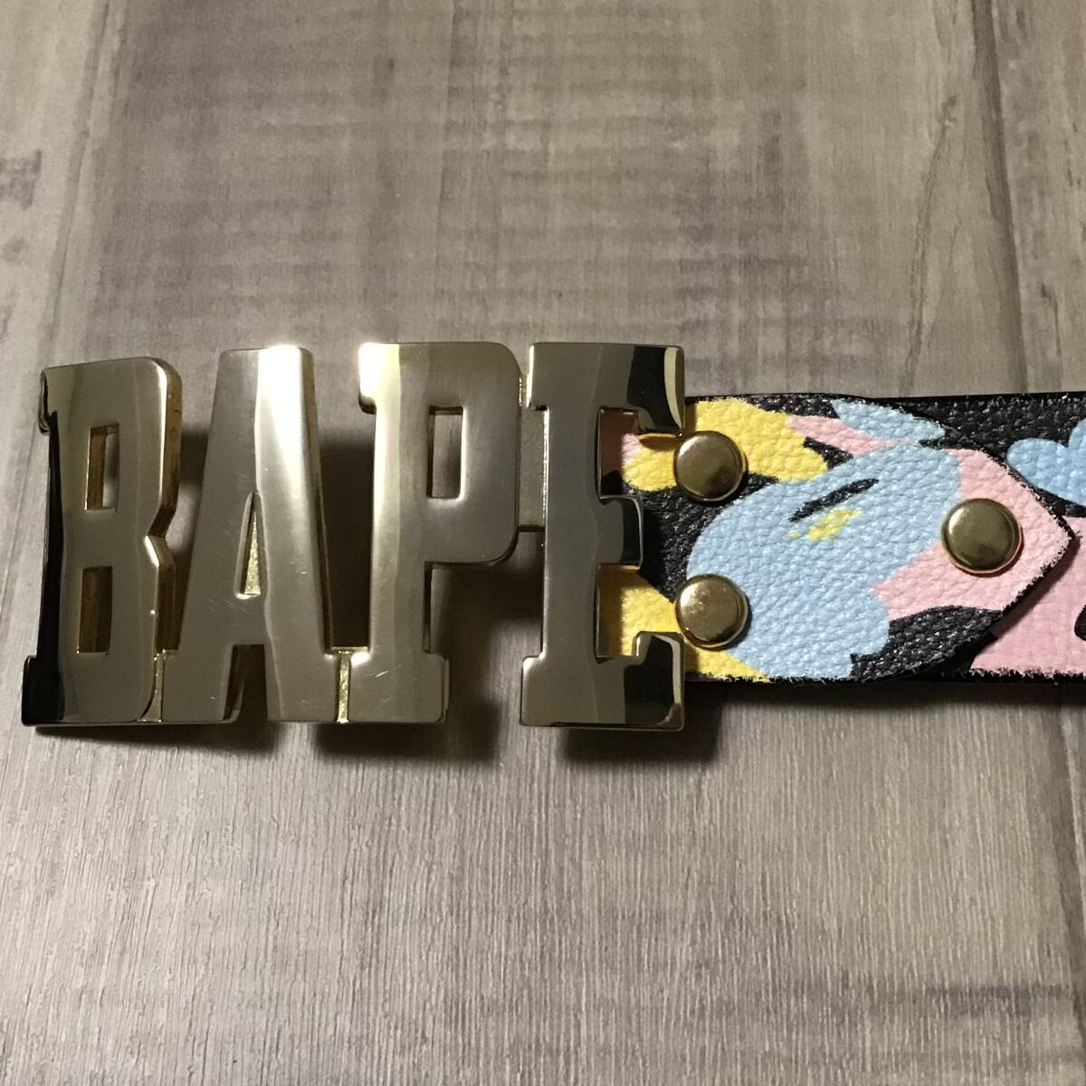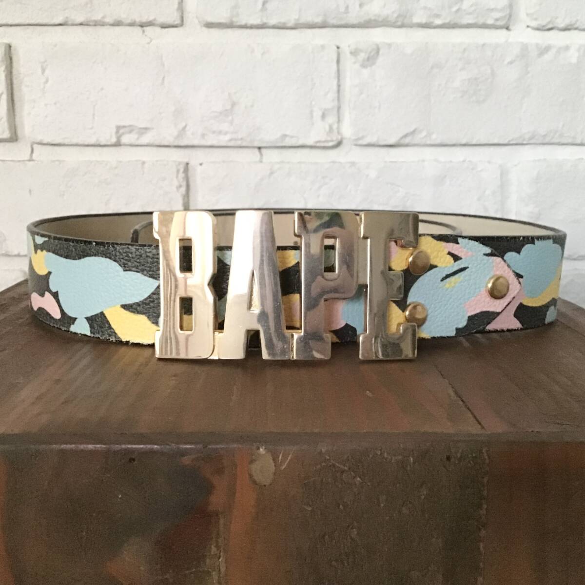 a bathing ape New multi camo レザーベルト ゴールドバックル × ブラック Lサイズ です★