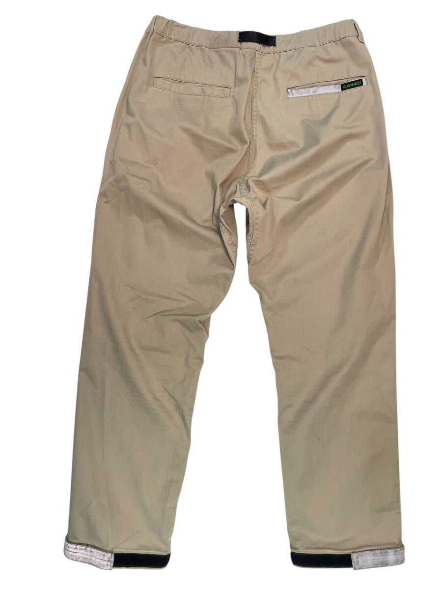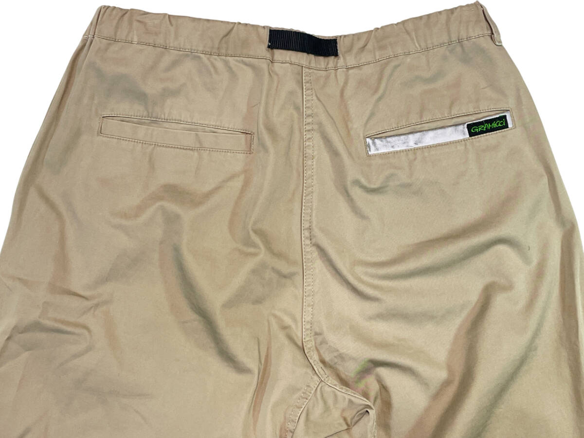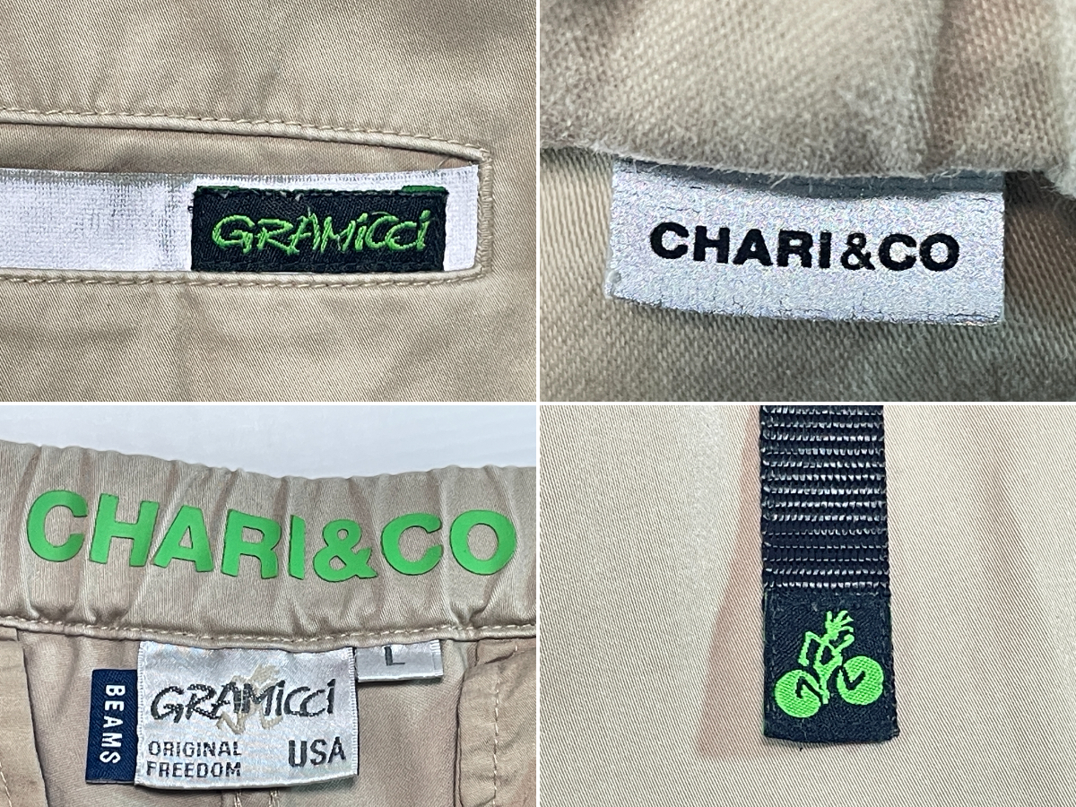 | ブランド:GRAMiCCi × BEAMS × CHARI&CO 型 番 :GMP-18F646 カラー :ベージュ 状 態 :USED GRAMiCCi × BEAMS × CHARI&CO 別注 リフレクターパンツ です。 CHARI & COのブランド10周年を記念し作られたサイクルパンツ。 シルエットは自転車に乗ることを考えた細身のシルエットで、生地はストレッチ性があり肉厚なベーシック素材を使用。 夜間運転時の安全面を考え随所に施されたリフレクターや、裾のチェーン巻き込み防止を考えたベルクロテープの仕様などファッションと実用性を兼ね備えている品です。 目立たない小さな汚れ、リフレクターの一部劣化はございますが、着用に支障の有るダメージは無くキレイな状態です。お探しの方お勧めの1本です。 ■サイズ:製品表記 サイズL ■サイズ:実寸(平置き) ウエスト 38.5~41.0cm (×2=約77~82cm) 股下 66.5m 股上 35.0cm ワタリ 34.0cm すそ幅 20.0cm | ||