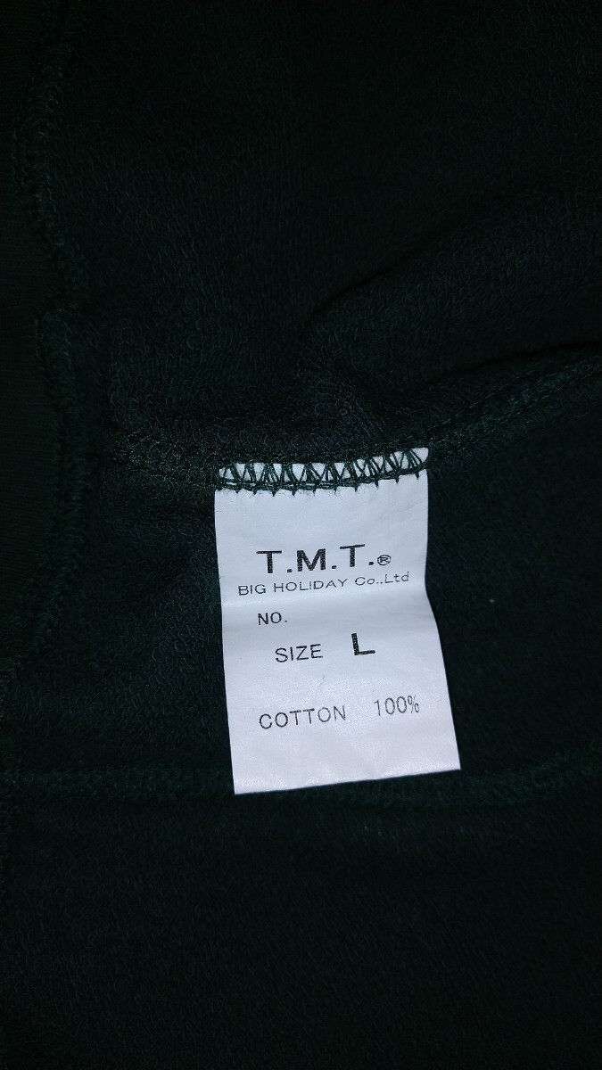 5~6年ほど前に新品購入したTMT Big Holiday ティーエムティー スウェットパーカーです。自宅にて試着しただけの未使用美品になります。カラーはグリーン、サイズはL、大きさについては下記をご参照ください。