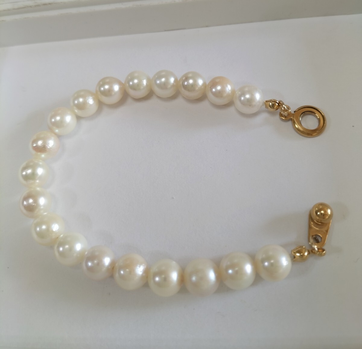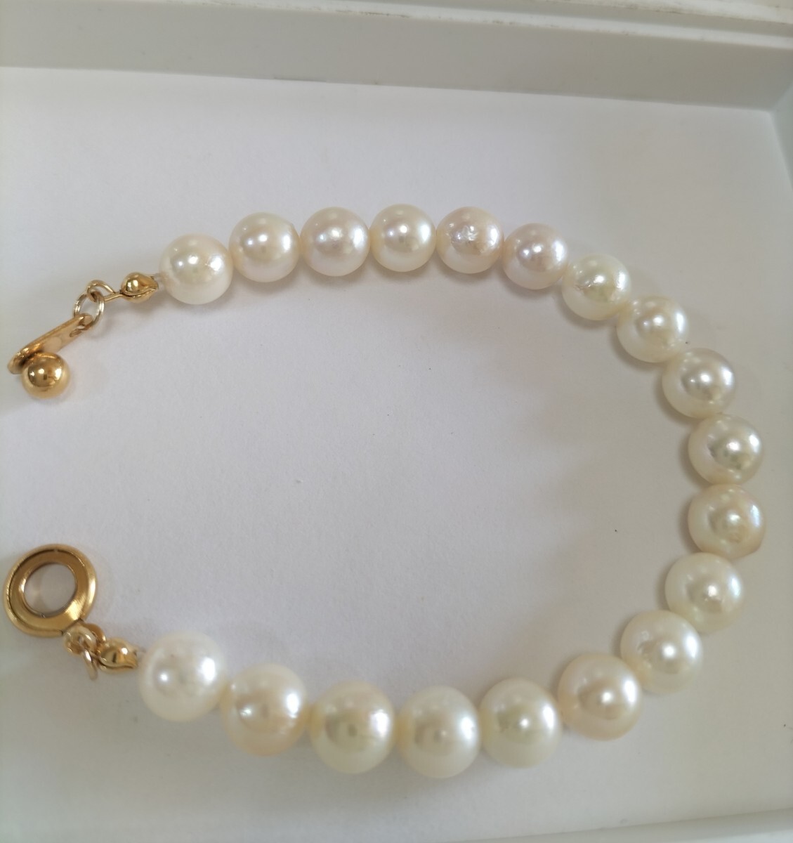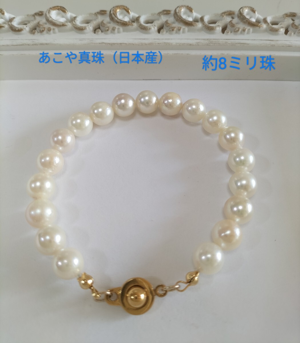 こちらは、日本産(宇和島産)あこや本真珠のブレスレットでございます。