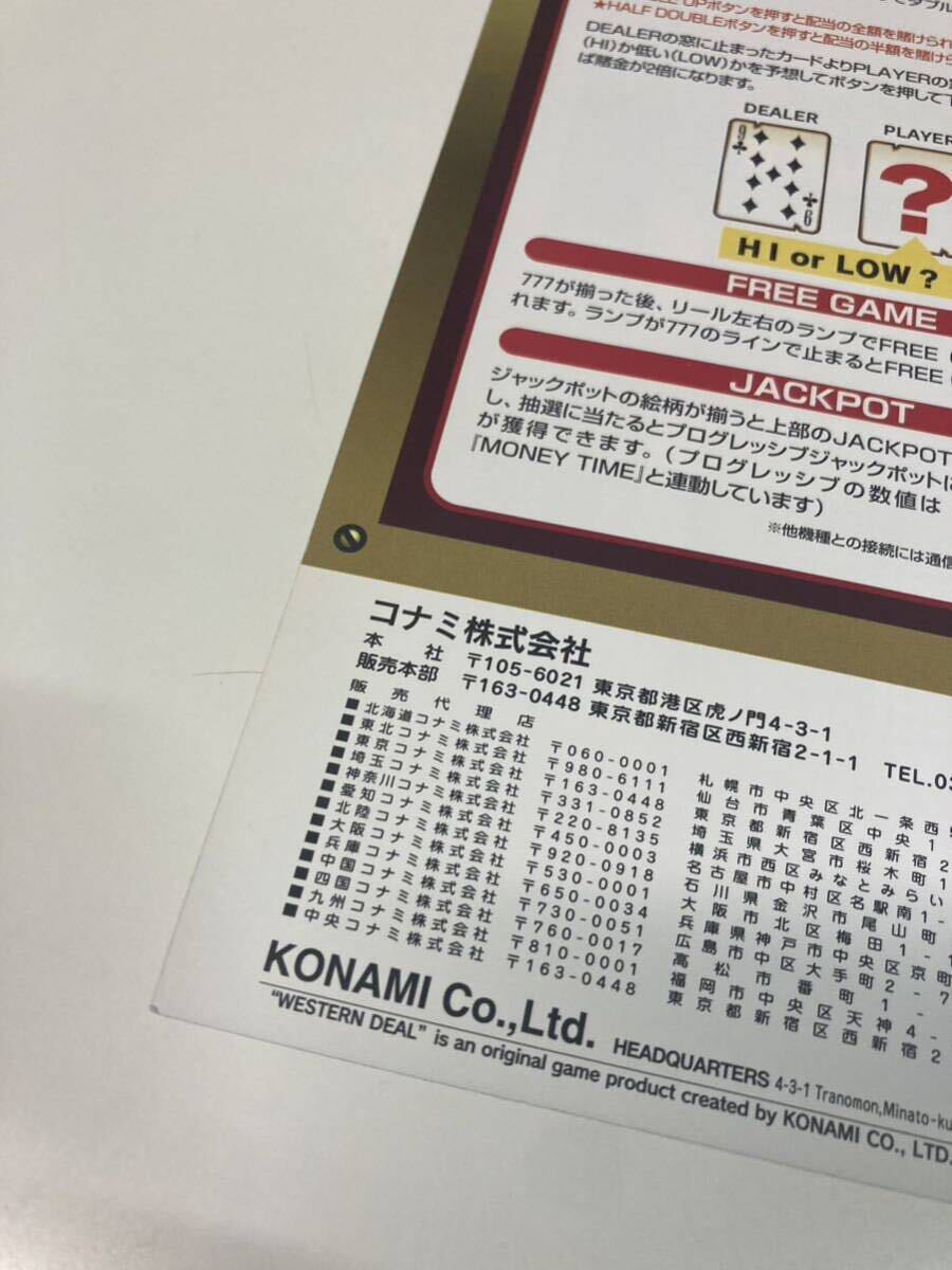 ウエスタンディール メダルゲーム KONAMI コナミ アーケード チラシ カタログ フライヤー パンフレット 正規品 非売品 販促