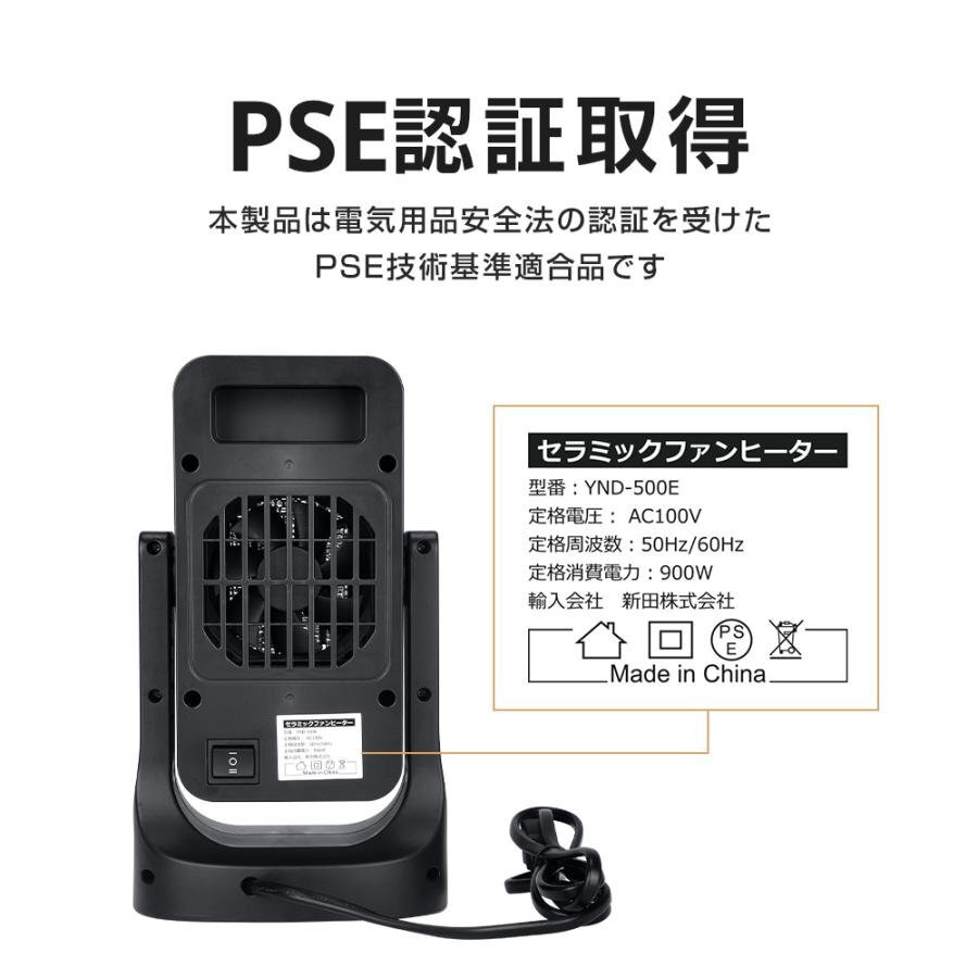 PSE認証済みの電気ファンヒーターで、難燃性の高い防火素材ABSを使用。転倒自動OFFや過熱対策が充実しており、石油やガスファンヒーターと違い、有害ガスを出さないため、無臭で安全に使用できます。