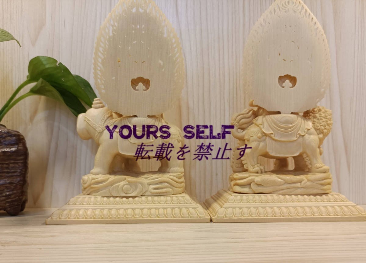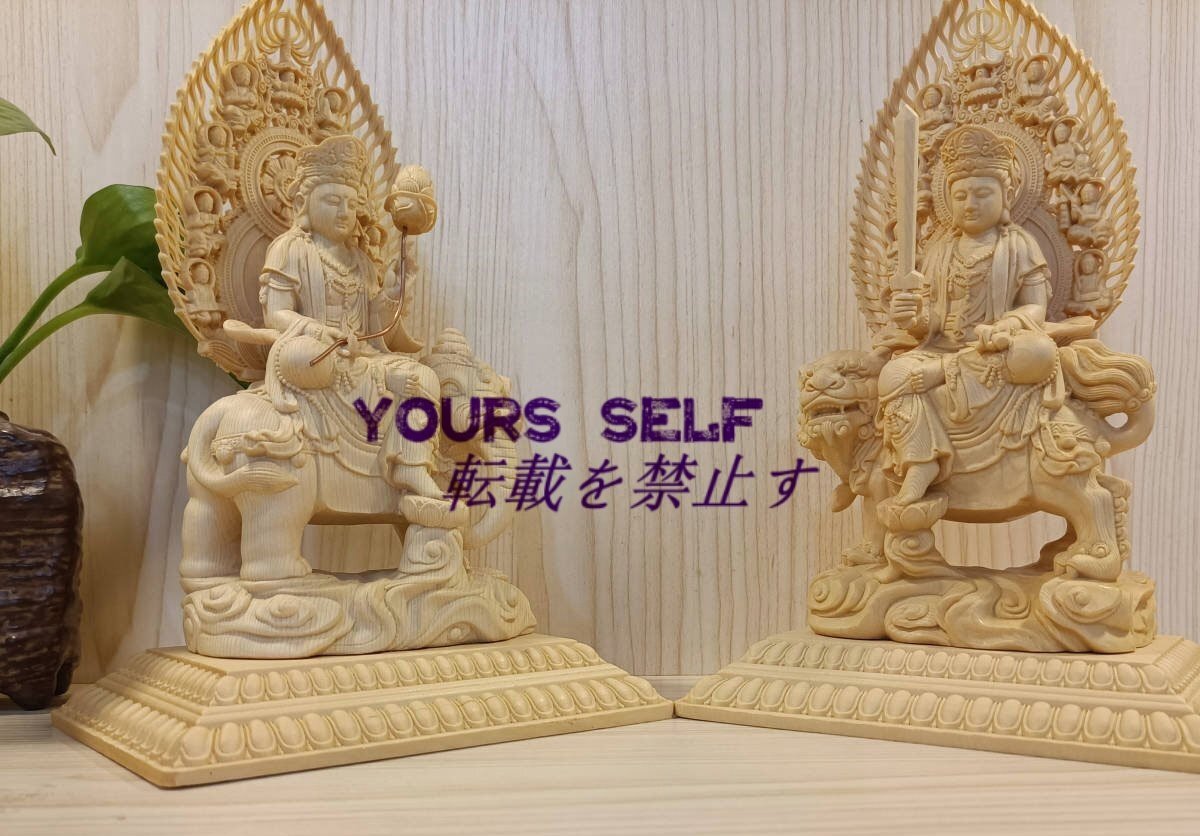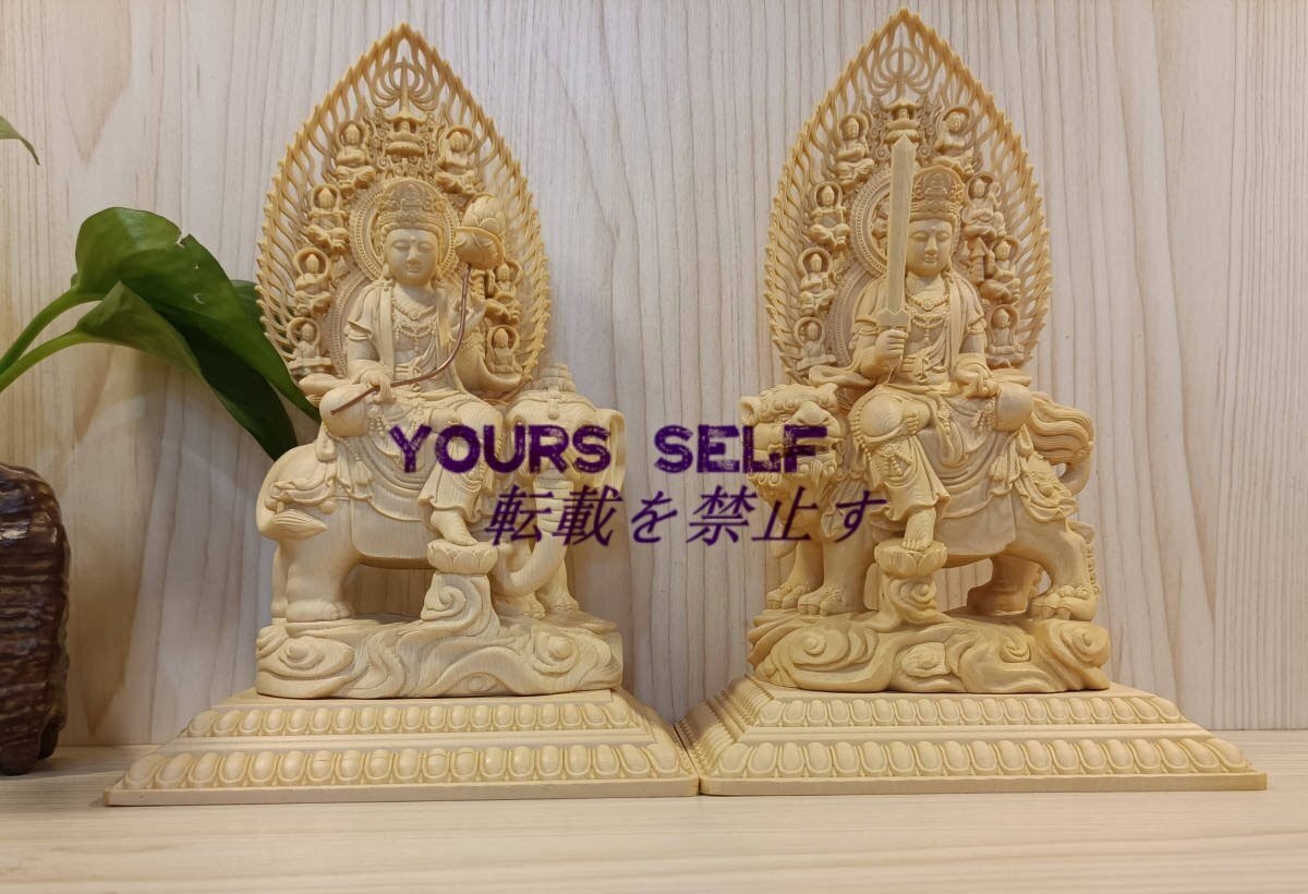 最高級 珍品 仏教工芸品 極上彫 木彫仏像 文殊菩薩 普賢菩薩 一式