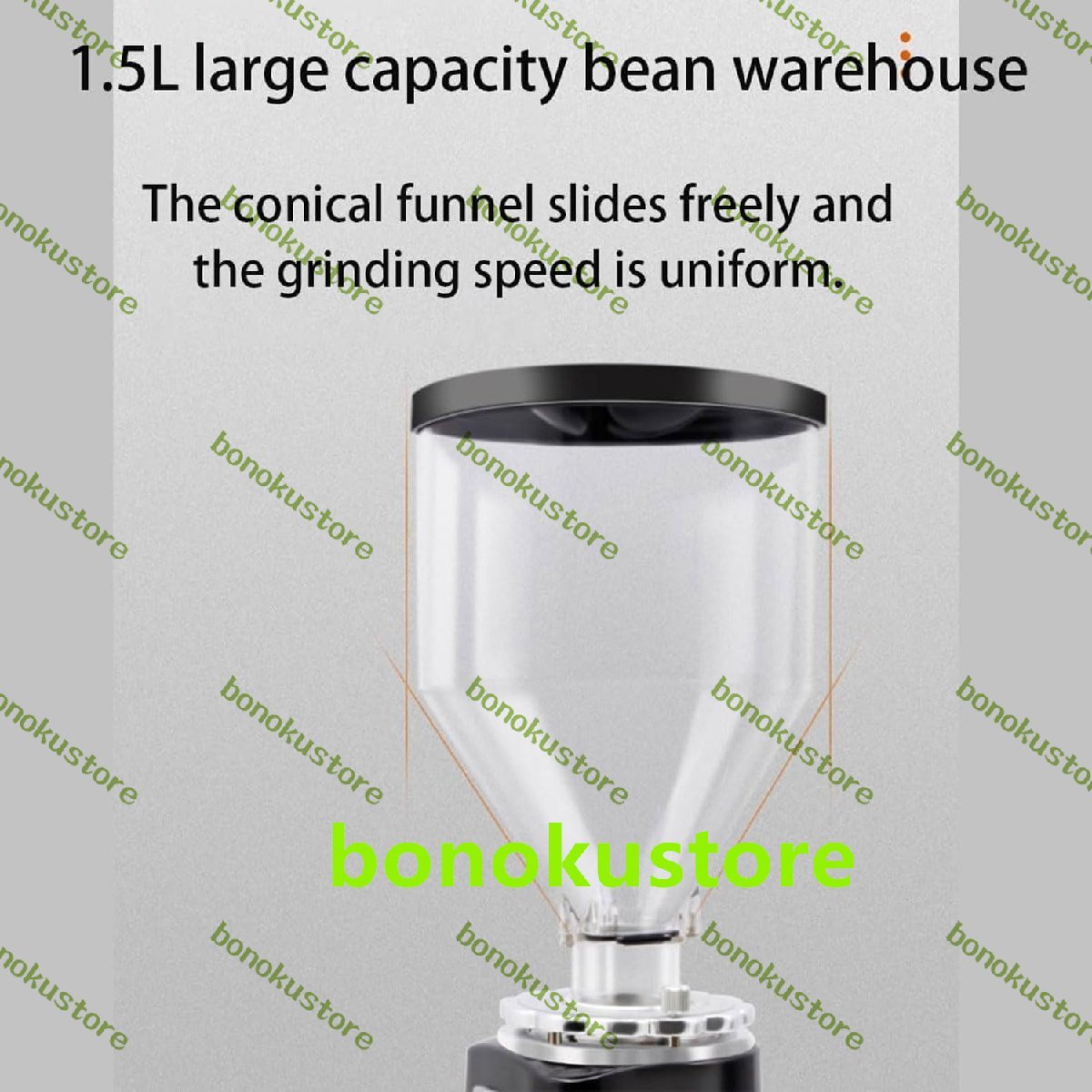 容量:コーヒーグラインダーには1リットルの漏斗が装備されており、傾斜した内壁設計により、バッチ粉砕中のコーヒー豆の流れがスムーズになります。大規模なイベントの準備でも、少量のバッチでも、当社のプロ仕様のコーヒーグラインダーがお客様のニーズにお応えします。