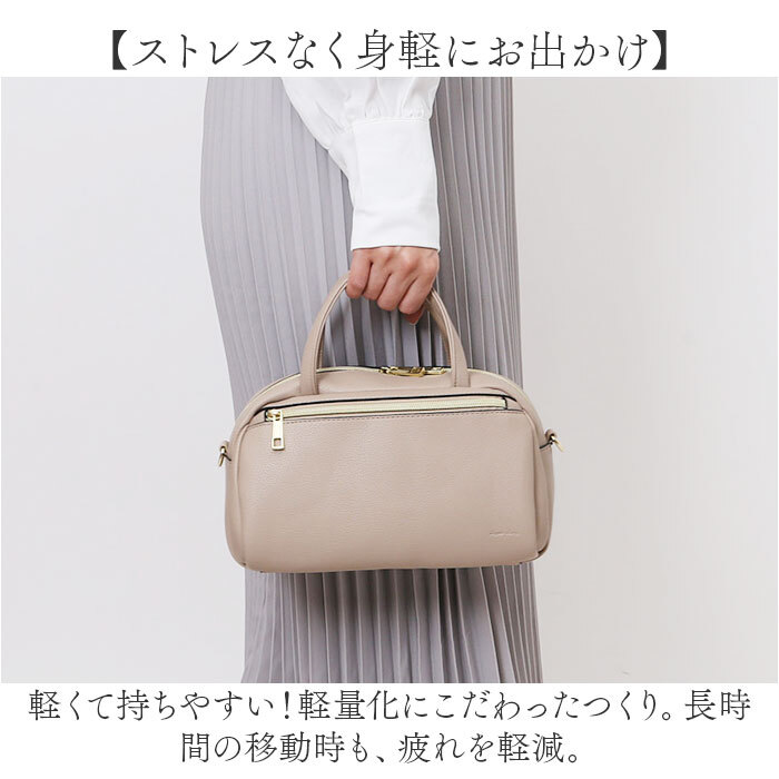 | 商品説明 | ・・【おしゃれに持てるお出かけの相棒】 ・Legato Largoのコロリーシリーズから、可愛らしい2WAYボストンが登場。 ・【愛くるしいころんとフォルム】 ・丸みを帯びたボストンバッグ。前面の立体的なポケットが、可愛さアップのポイント♪ ・【ストレスなく身軽にお出かけ】 ・軽くて持ちやすい!軽量化にこだわったつくり。長時間の移動時も、疲れを軽減。 ・【お好みに合わせてスタイルチェンジ】 ・手持ちで♪長さ調節可能なショルダーを取り付け、肩掛けや斜め掛けも自在な2WAY! ・(※)手持ちハンドルは、スナップボタンでまとめることができます。 ・【ガバっと開くダブルファスナー】 ・左右どちらからもオープン。中身を確認しやすく、ファスナーを閉じればプライバシーを確保。 ・【小ぶりに見えて必需品がひとまとめ】 ・長財布や600mlペットボトルが横向きに。程よいマチで、ミニポーチなどもIN。 ・【安定した状態で荷物を持ち運び】 ・ソフトな底板を内蔵。荷物を入れていない状態でも自立し、安定性をキープ◎ ・【サクッと取り出せて迷子知らず】 ・合計2つのポケットを配置。細々した物も、バッグの中で探す手間が不要。 ・【面倒なお手入れは不要!】 ・手触り柔らかなPU素材。特別なお手入れは必要なく、汚れなどは拭き取るだけでOK。 ・【落ち着きのある上品な仕上がり】 ・シンプルなワンカラーに、光沢のある金具がマッチ。飽きが来ず、長く愛用できるアイテム。 ・【ポケット仕様】 ・内側:オープンポケット×1 ・前面:ファスナーポケット×1 |