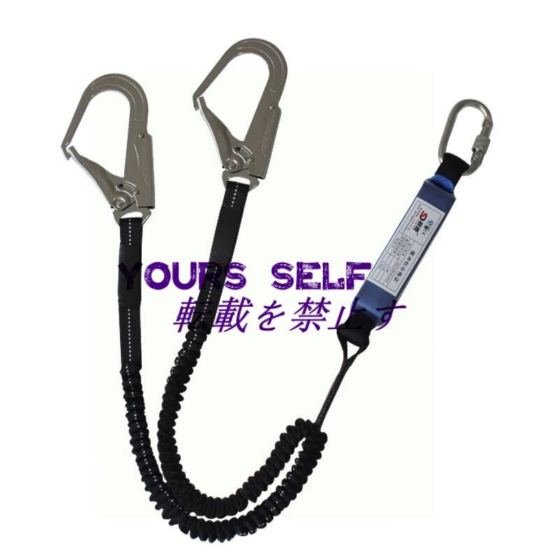 新品 超人気★衝撃吸収 フルハーネス型用 2丁掛けタイプ ランヤード ダブルランヤード 伸縮 蛇腹式ロープ フック 安全帯用 60-120cm